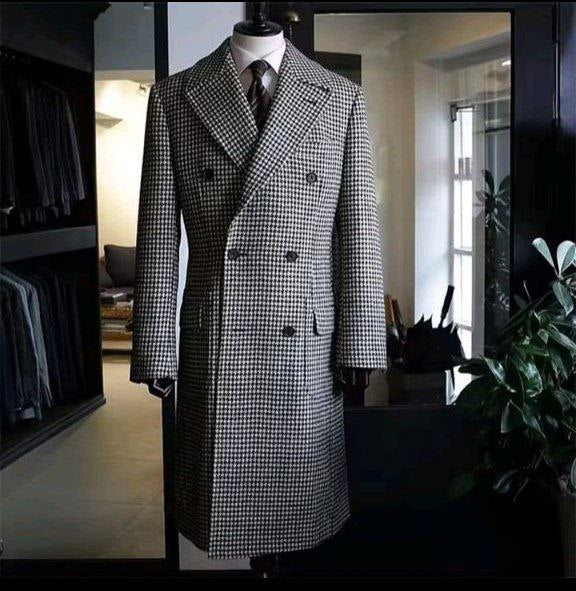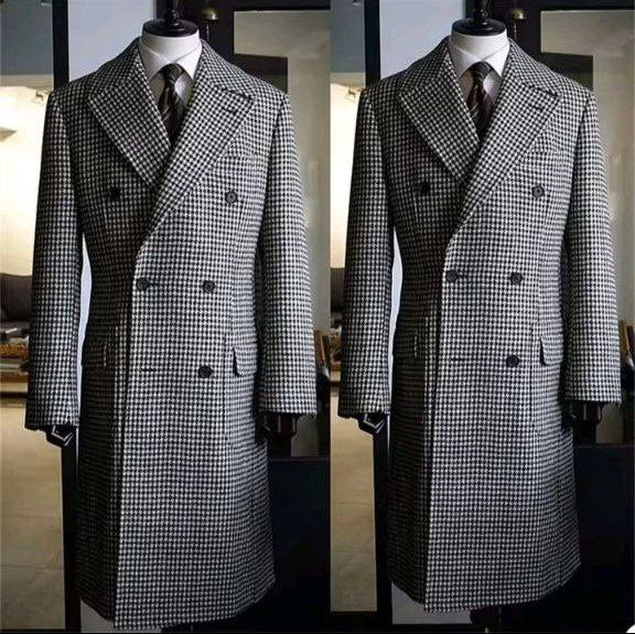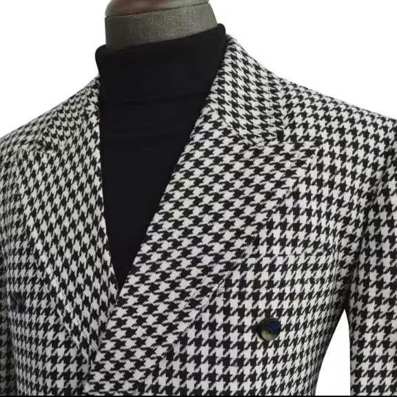 Elevate your wardrobe with this men’s houndstooth long coat, designed with a stylish peak lapel. Made from high-quality wool blend, it offers warmth, sophistication, and versatility. Perfect for casual outings, weddings, and formal occasions.
