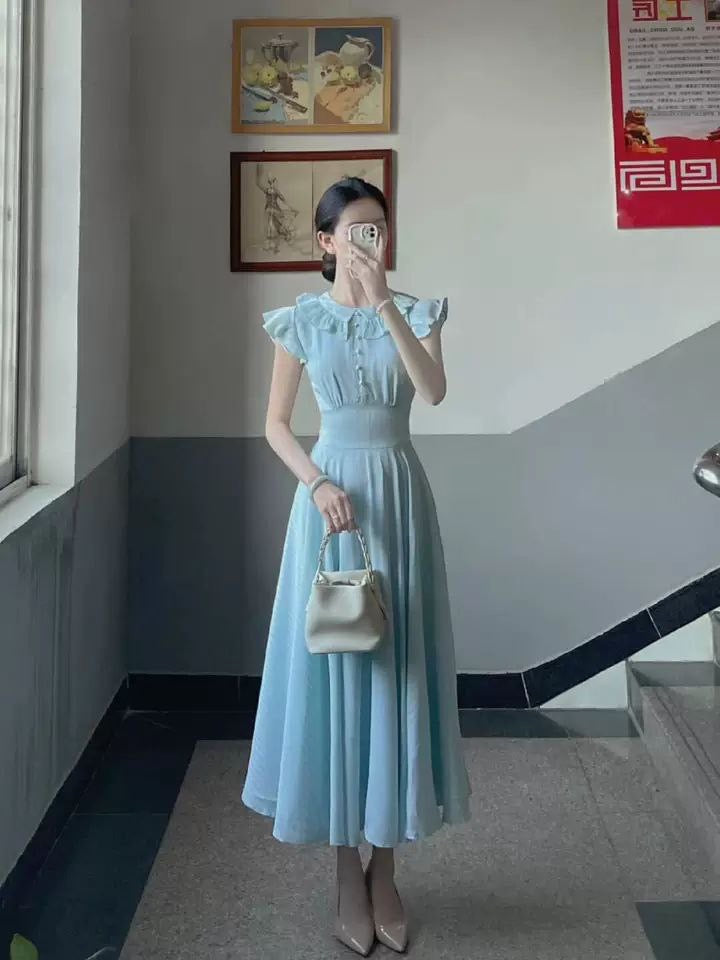 فستان MLYD/مقاس كبير مخصص بأكمام طائرة زرقاء، فستان