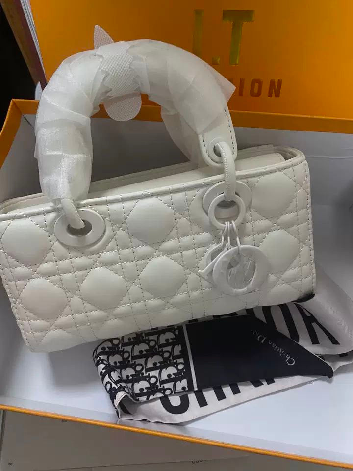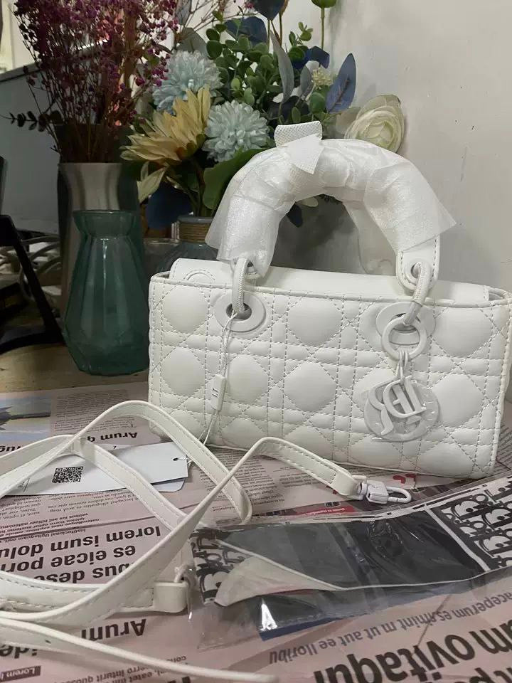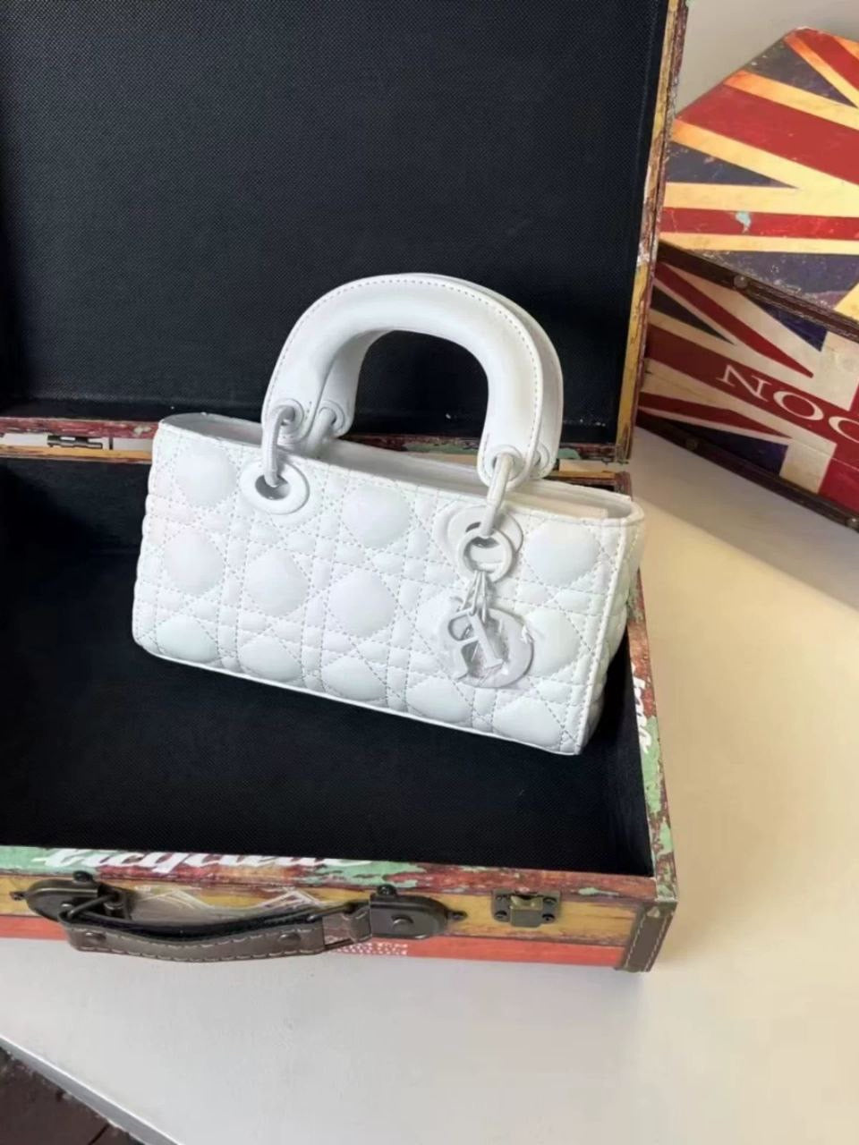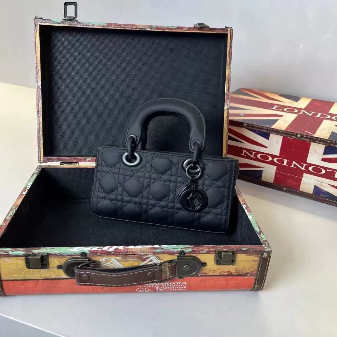 Princess Diana Horizontal Leather Handbag – 2025 Diamond Pattern Edition