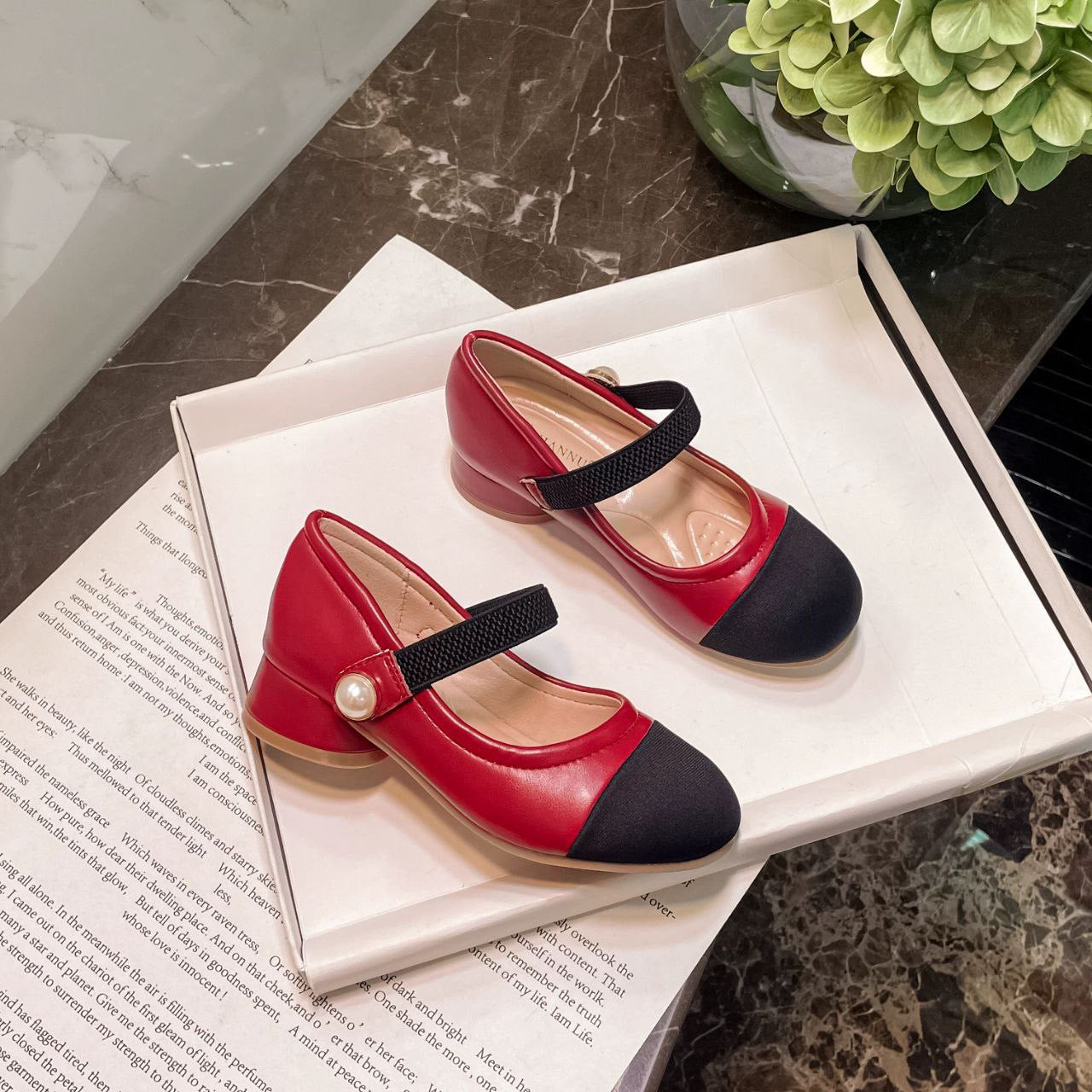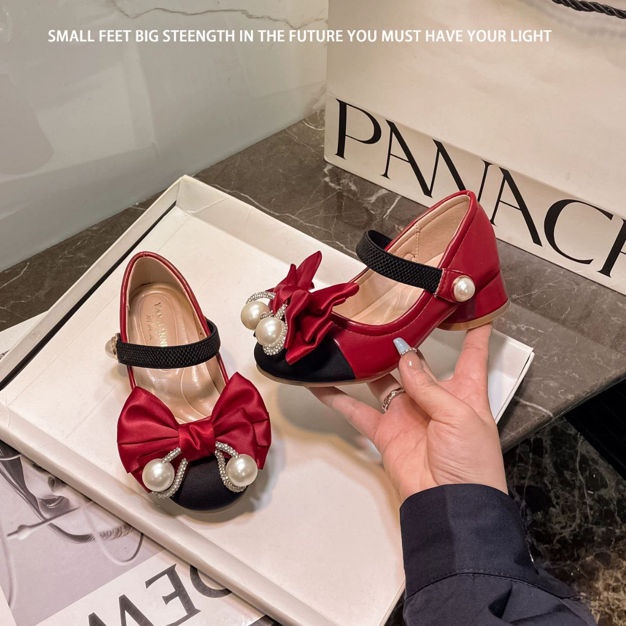 أحذية أطفال جلدية أنيقة بكعب عالٍ