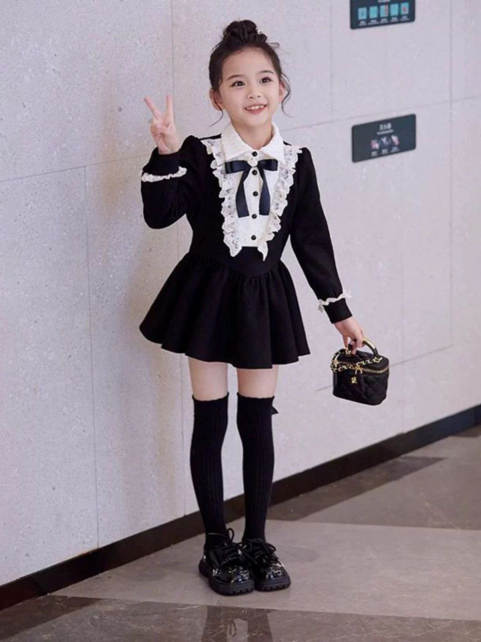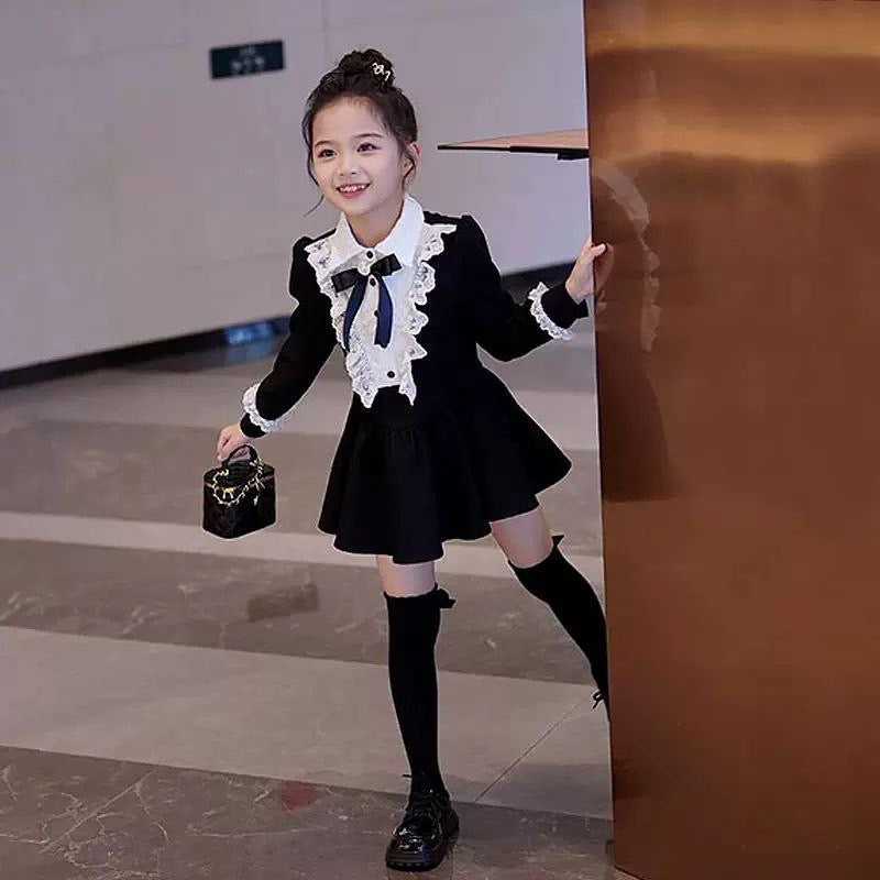 فستان أسود قصير بنمط أميرة للبنات – تصميم أنيق للبنات الصغيرات