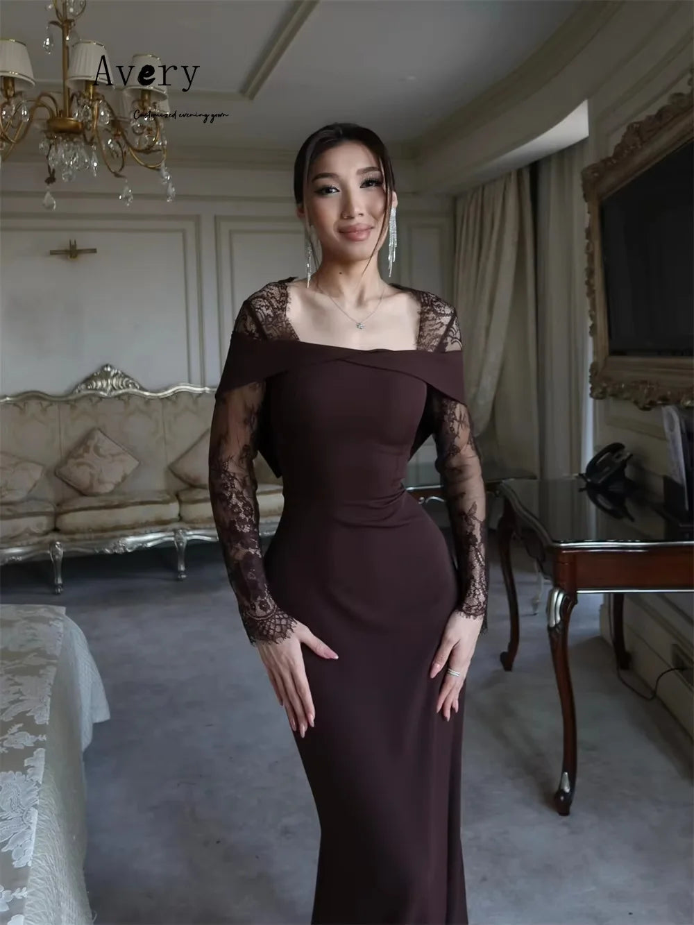 Avery Custom Lace Fishtail Square Neck Embroidery Prom Dress Elegant and Formal Women's Dresses Luxury Party Dress Evening 2025