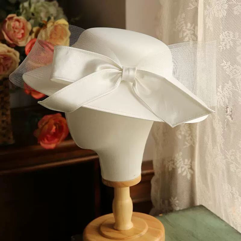 Weißer Retro-Hat im Hepburn-Stil & vielseitige Cheongsam-Krawatte