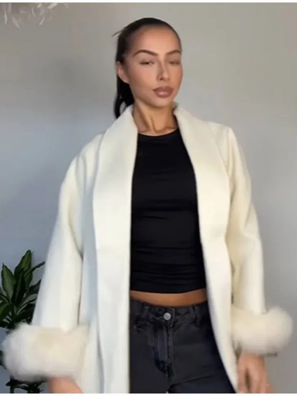 White Fluffy Long Sleeve Coat / S - €160,23 EUR