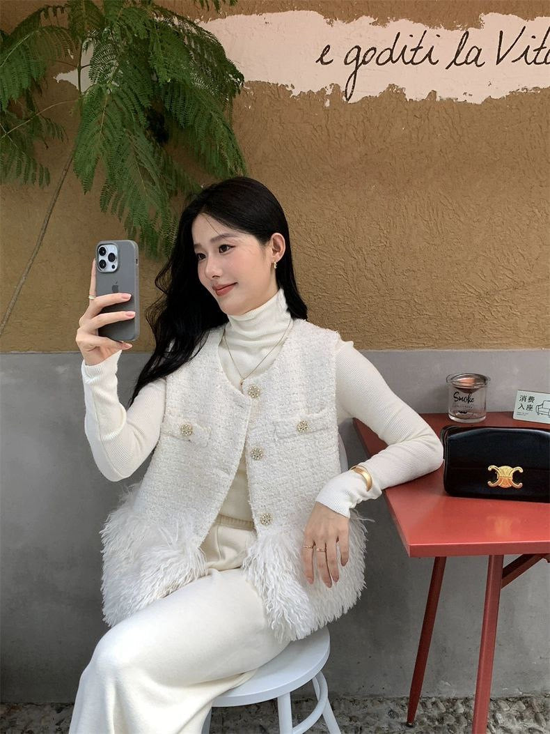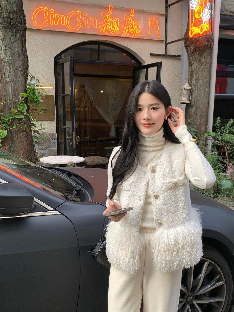 Best-Selling Celebrity-Inspired Suit – Chanel-Style Fur Jacket & Loose Top