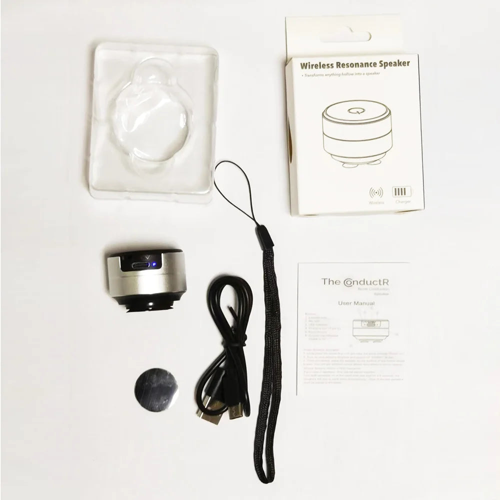 A pocket-sized powerhouse designed for a new way to experience sound. This beautifully crafted mini metal speaker uses bone conduction technology to turn any surface into your personal sound system.