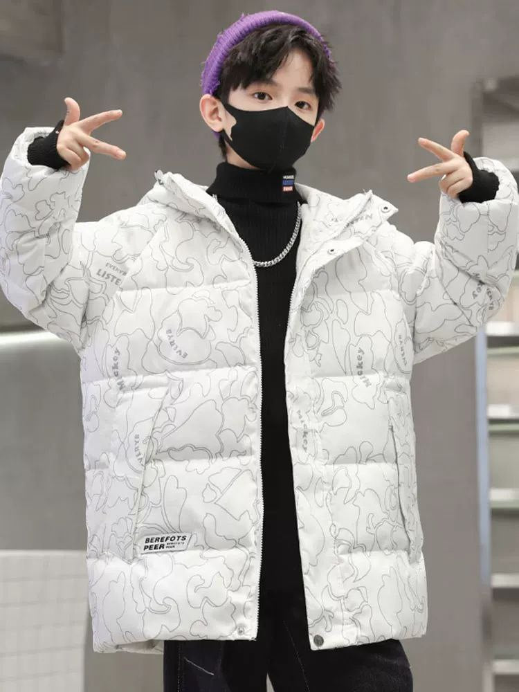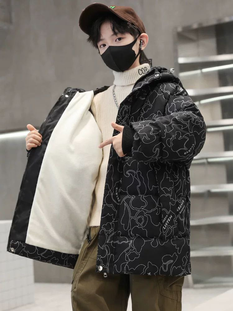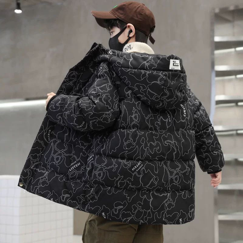 Keep your child warm and stylish with this thick cotton winter coat, designed for older boys. Ideal for autumn and winter, it provides comfort and protection against cold weather while maintaining a modern and casual look.