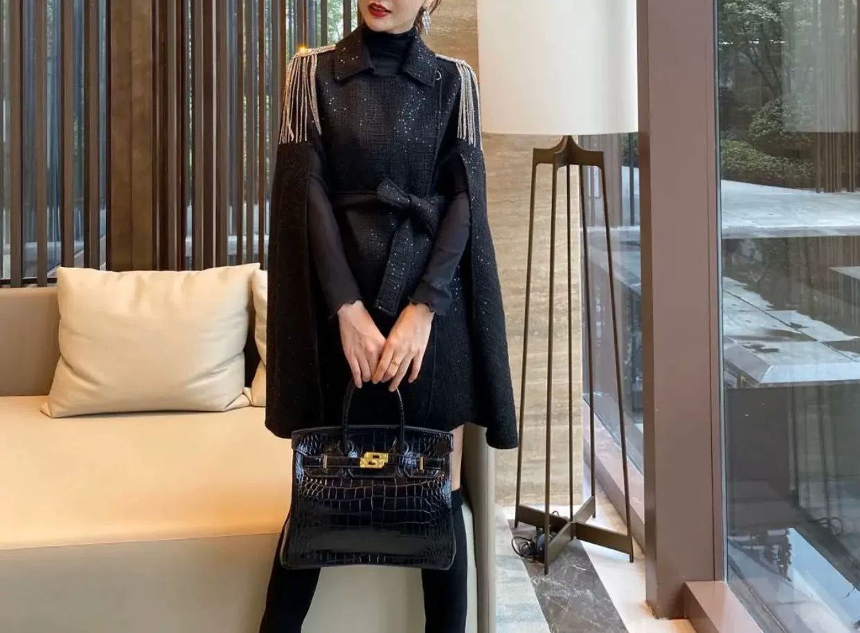 سترة أنيقة بحزام نحيف وشال كتف بنمط المشاهير، مثالي لفصل الخريف ويمنحك إطلالة راقية وعصرية.