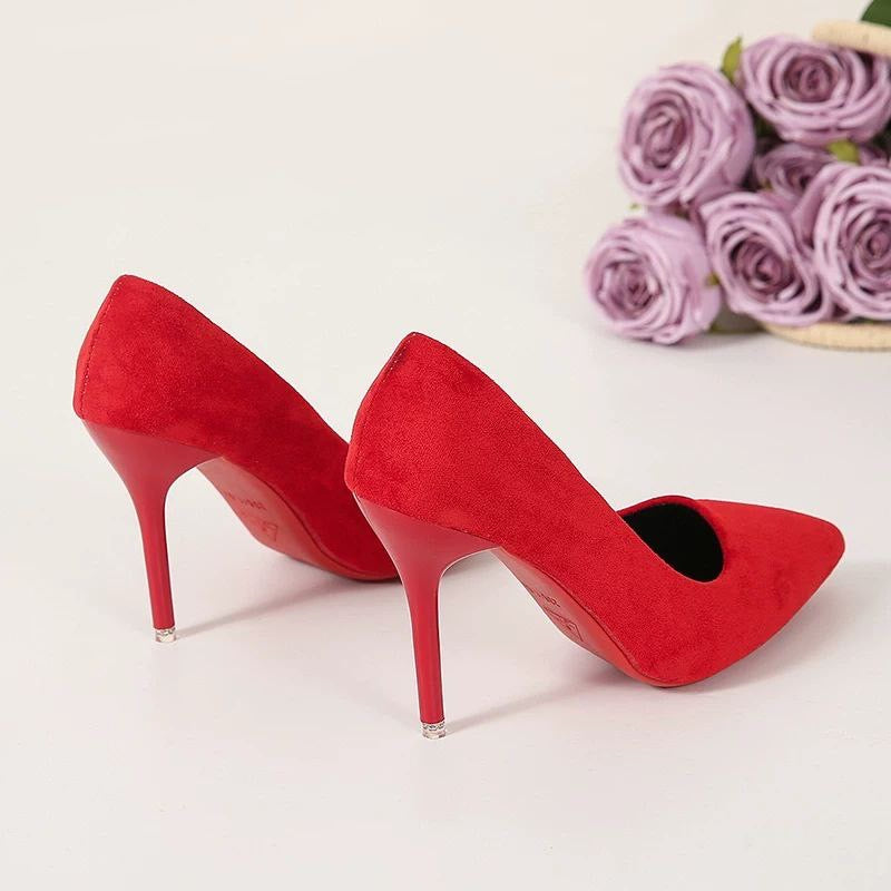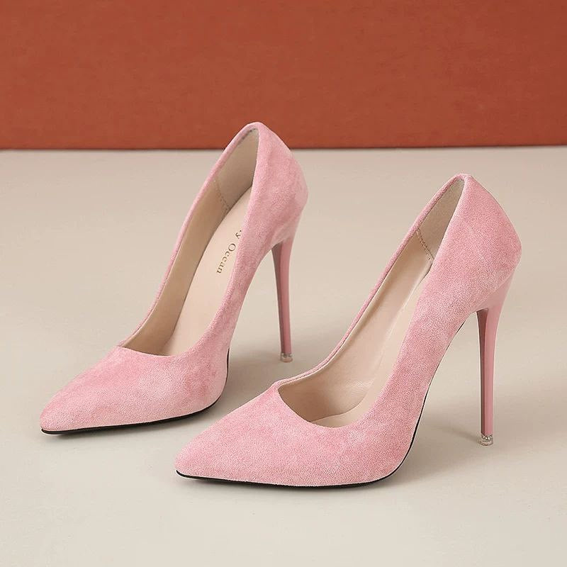 Fashionable high heels for girls with shallow pointed toe, sweet pink color, perfect for spring and fall – available in extended sizes