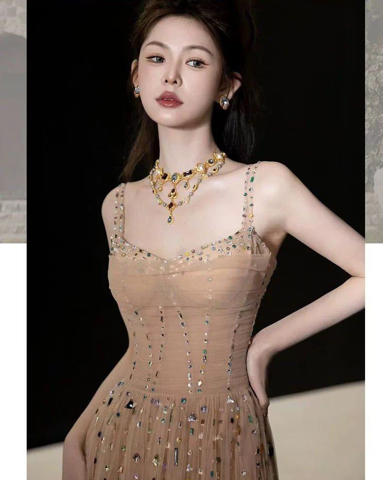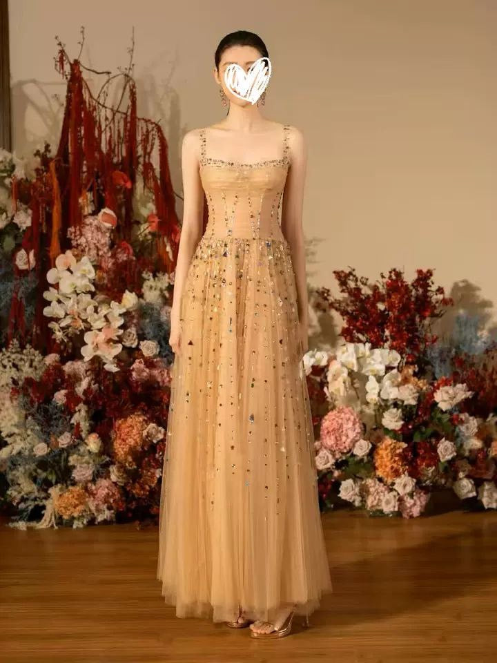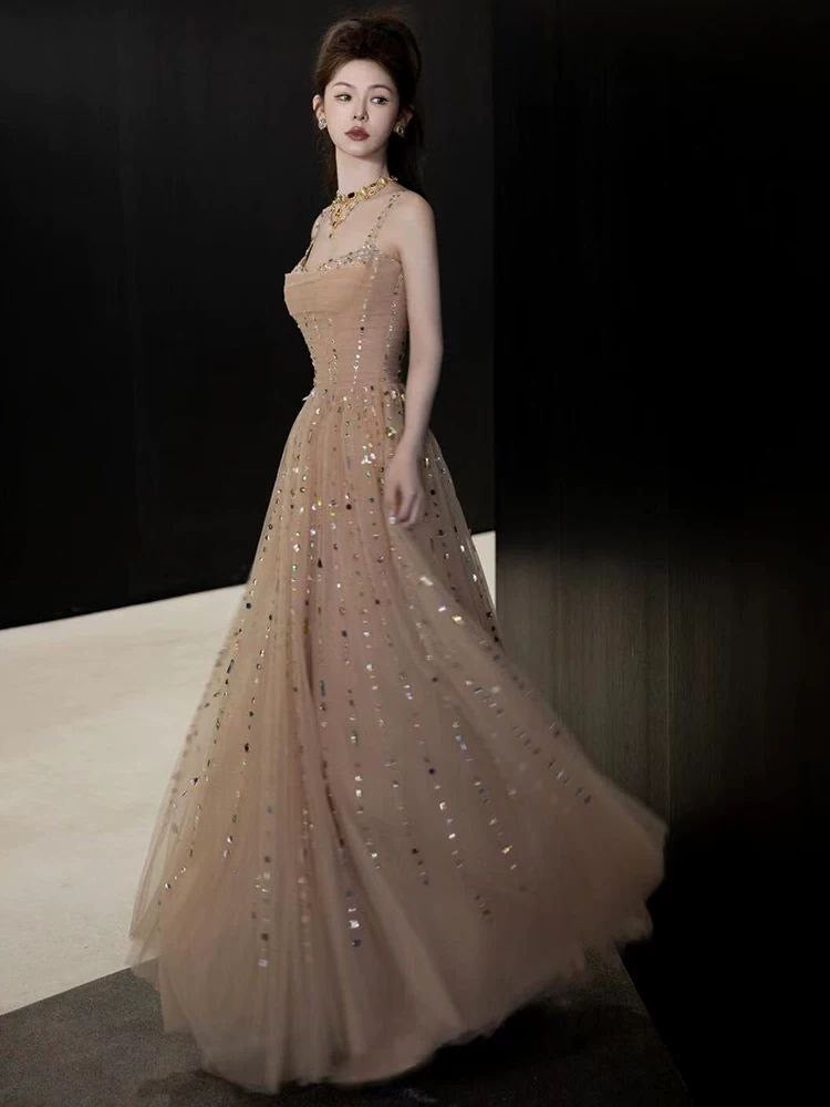 فستان سهرة بلون الشمبانيا فخم وراقي