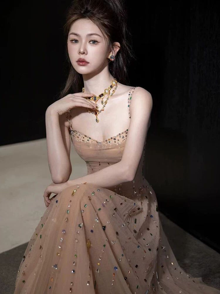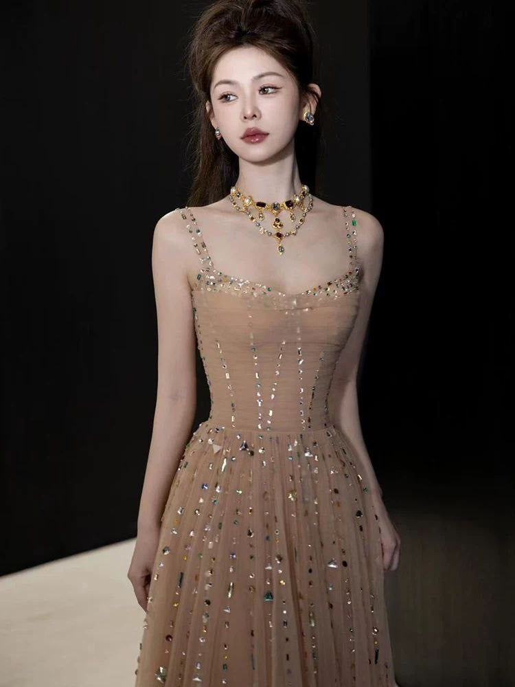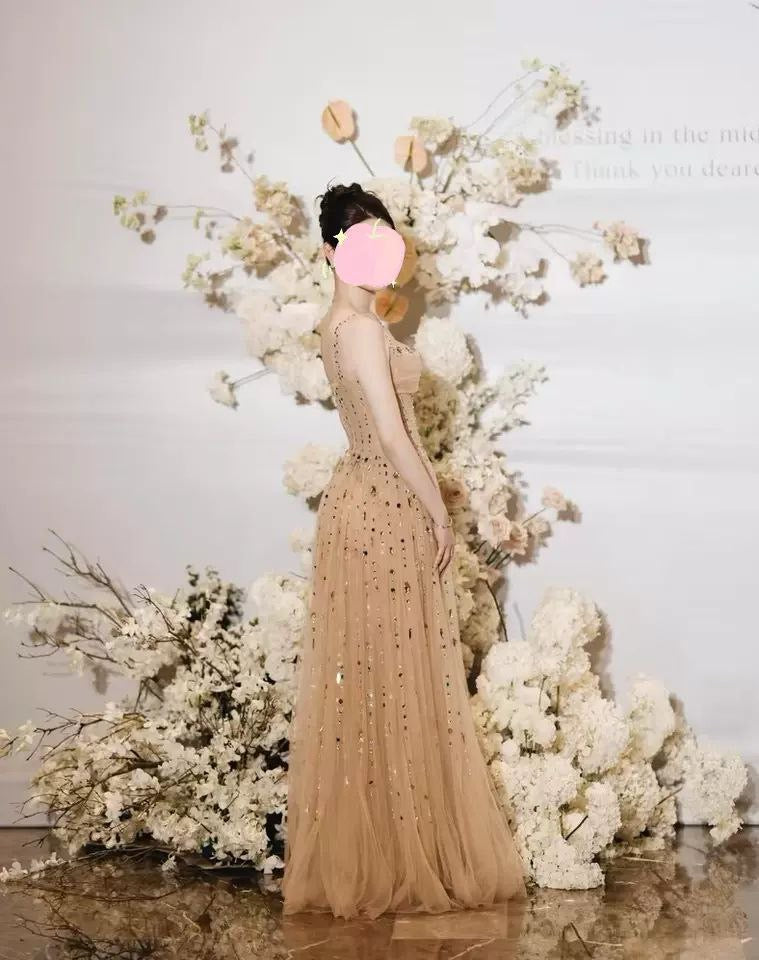 فستان طويل مناسب للحفلات والمشاهير ومزاج المضيف، خفيف وفاخر بمستوى رفيع.