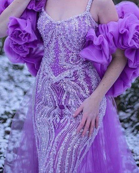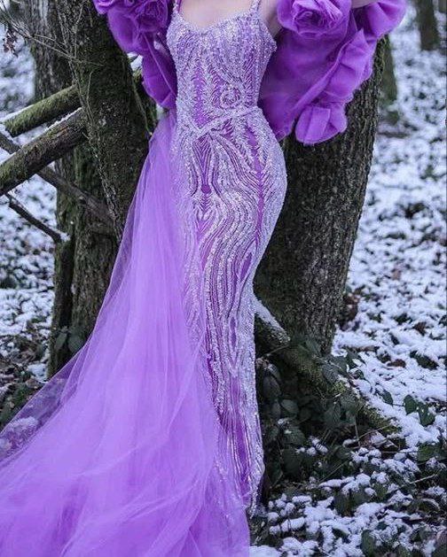 Custom-Made Purple Beaded Long Evening Dress for Red Carpet Events