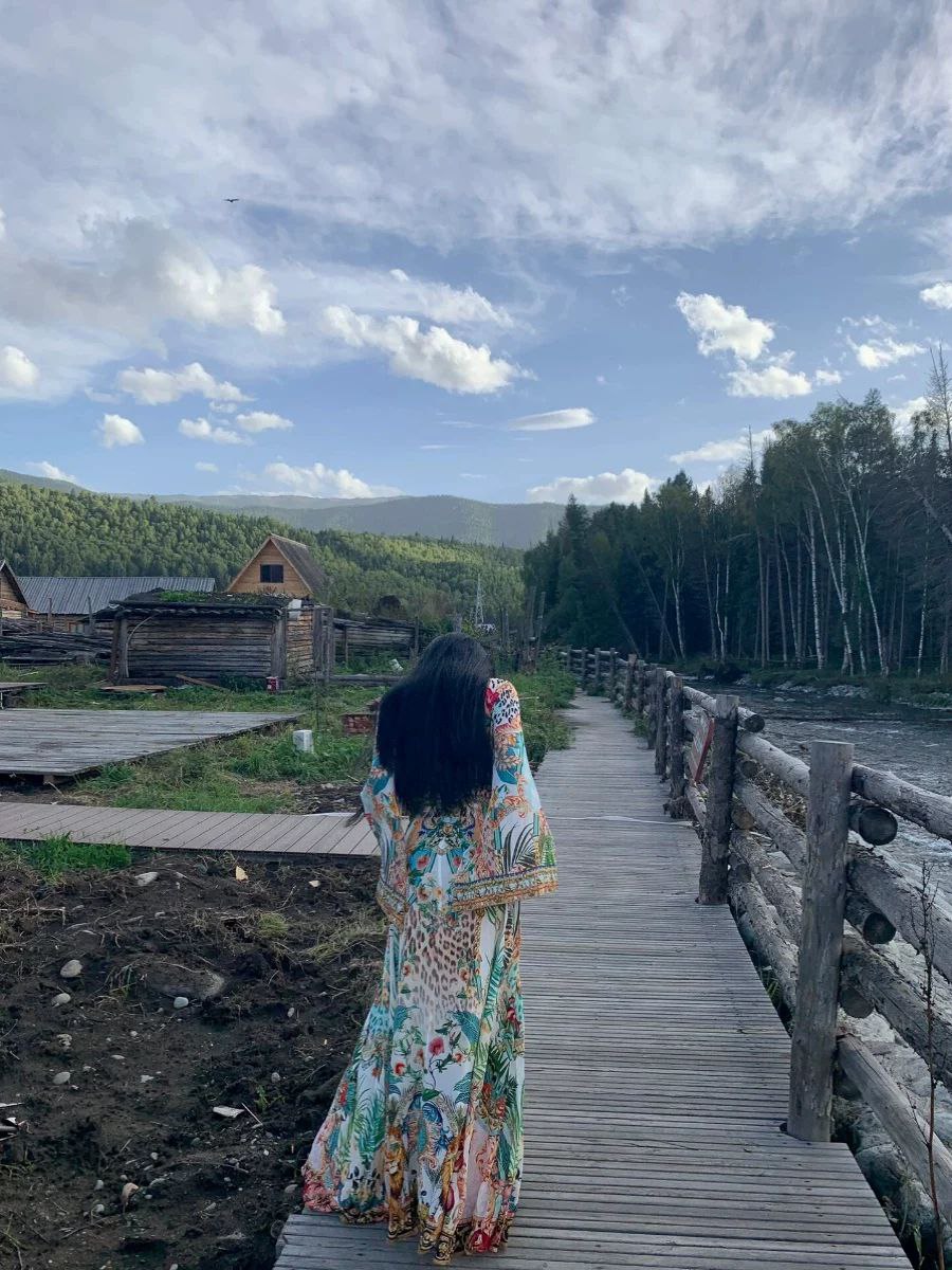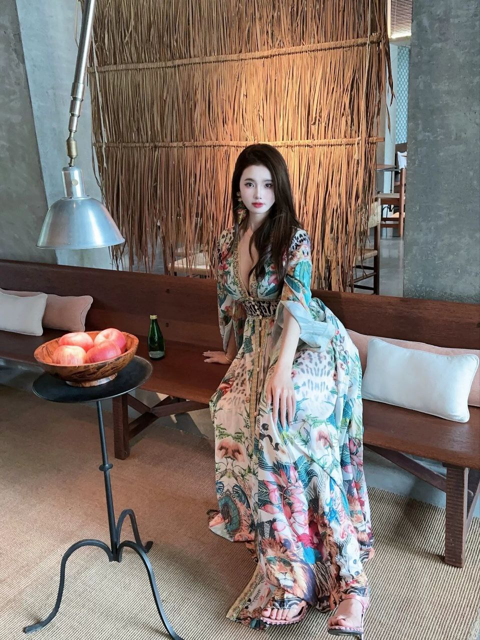 فستان DAYDAYUP Busisi بنفس الأسلوب والرغبة في العمل الثقيل مع خصر ماسي ساخن وأكمام طويلة، تنورة طويلة للنساء لقضاء إجازة الشاطئ.