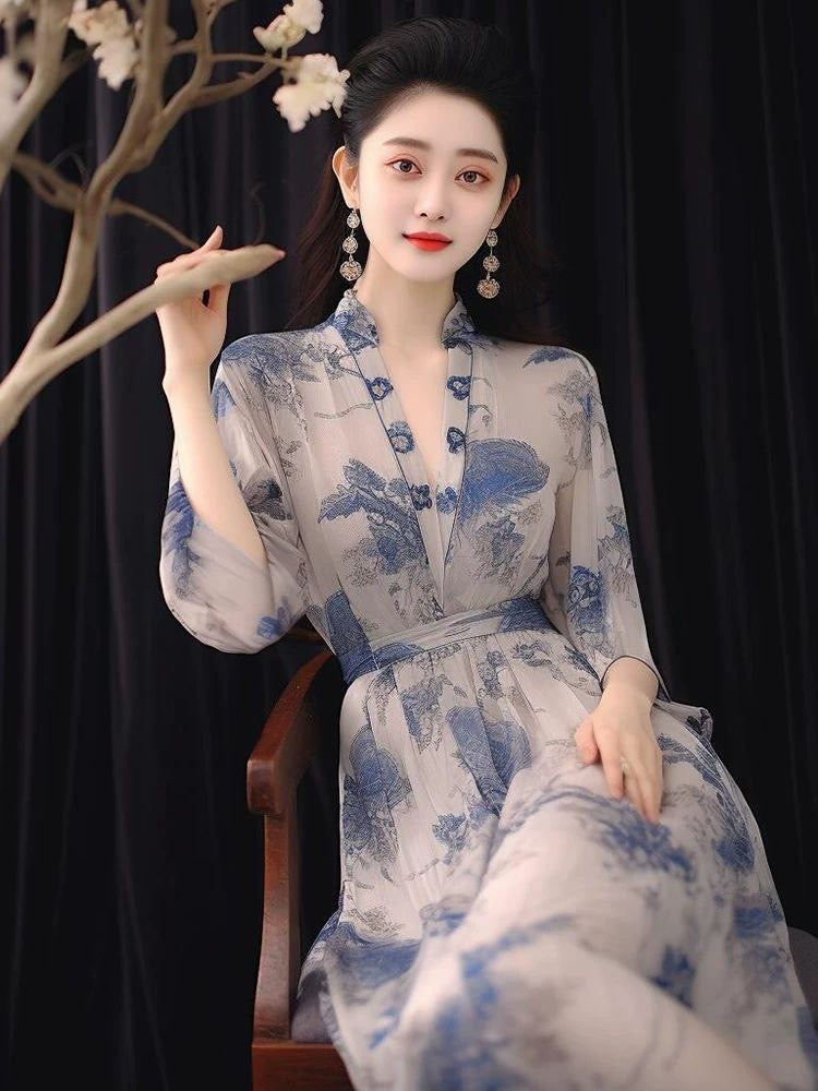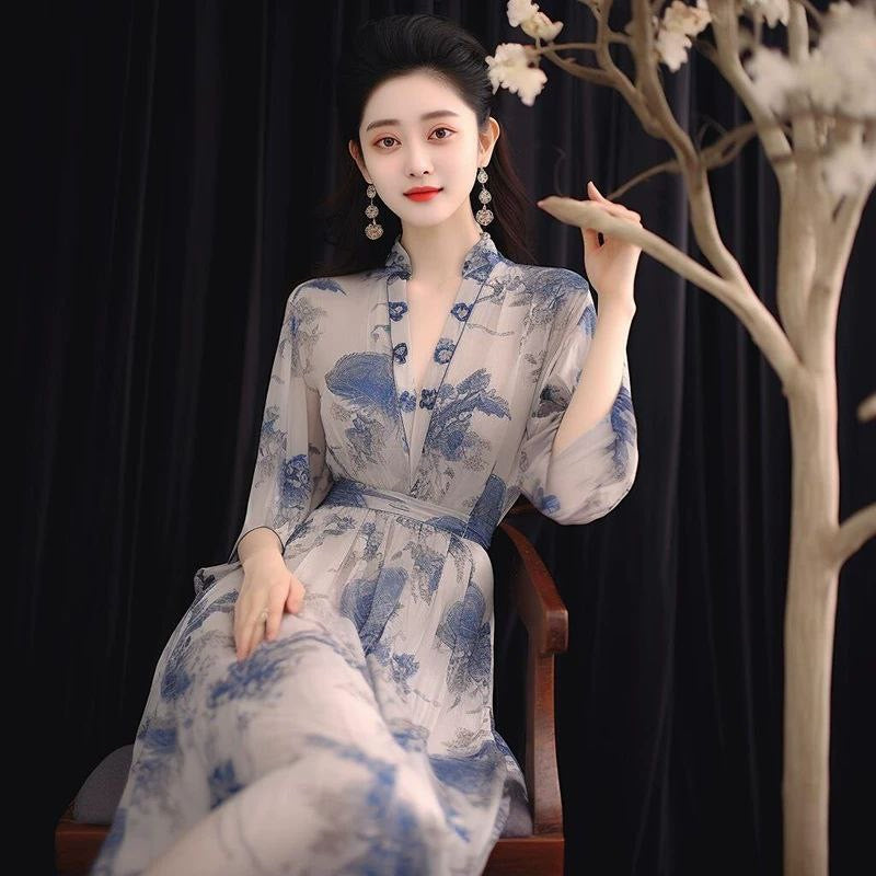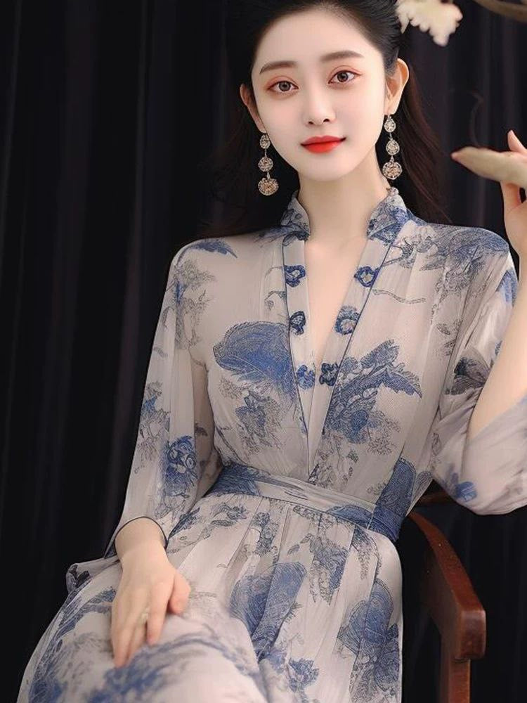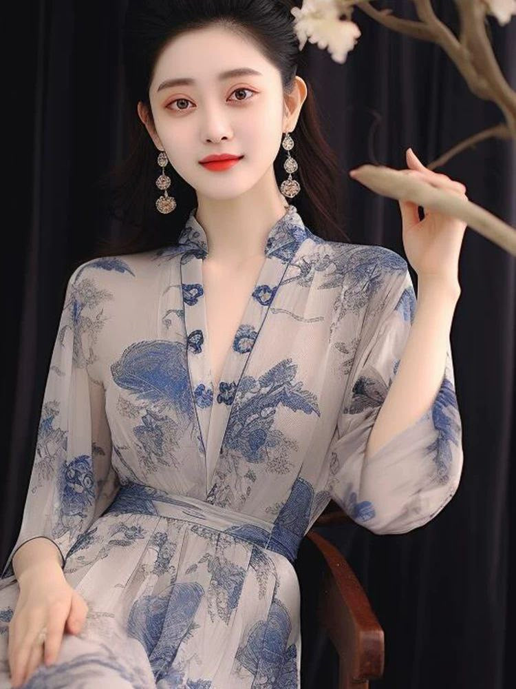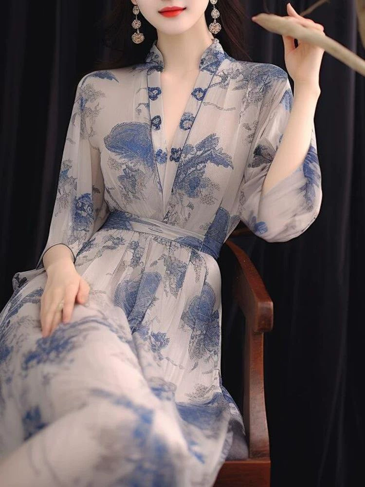 Women's Chiffon Dress with V-Cut and Elegant Tailoring