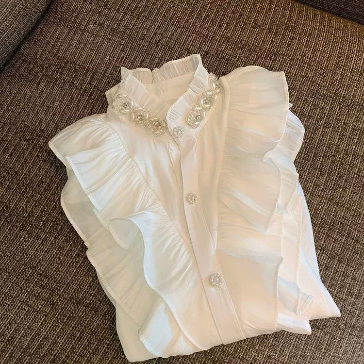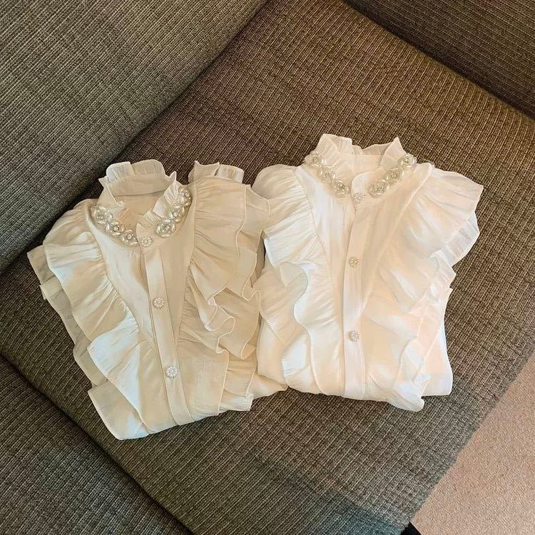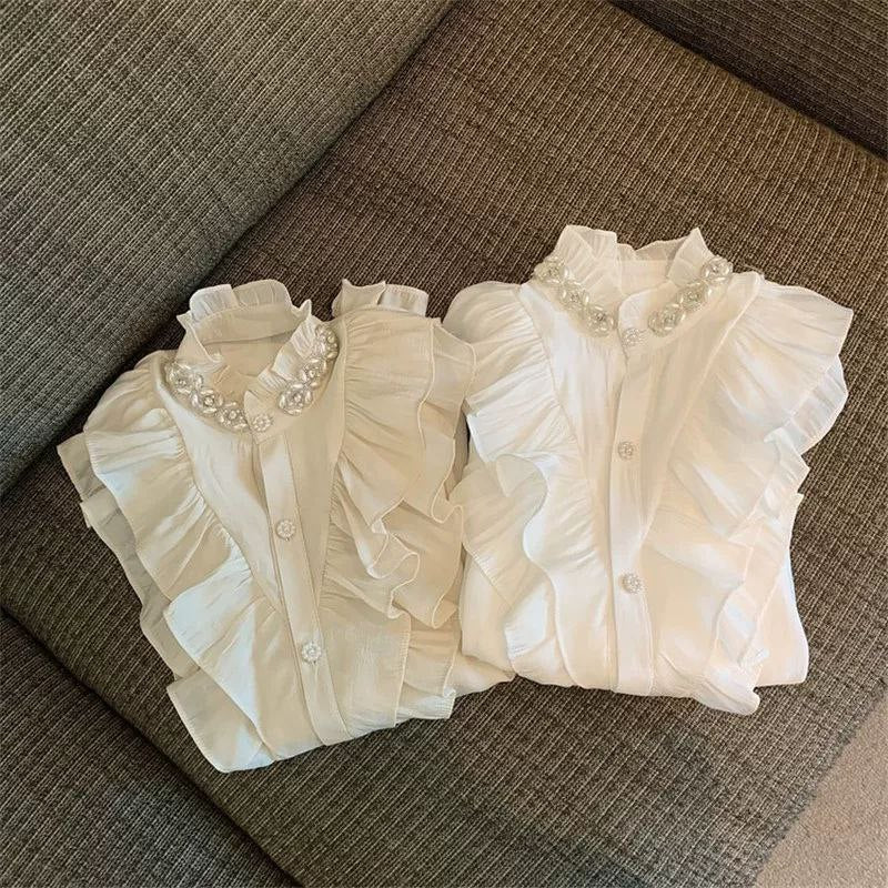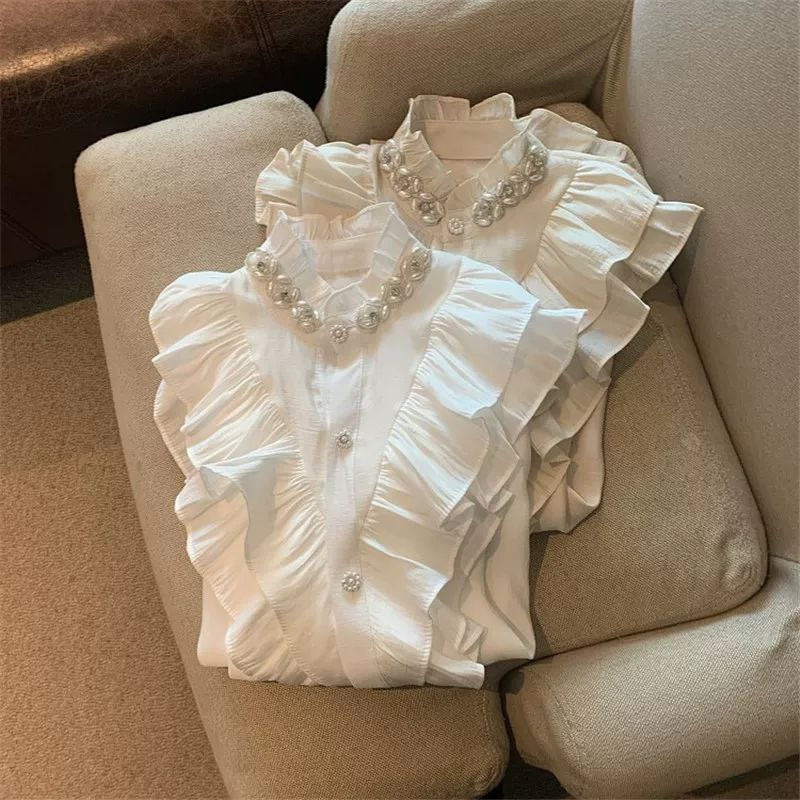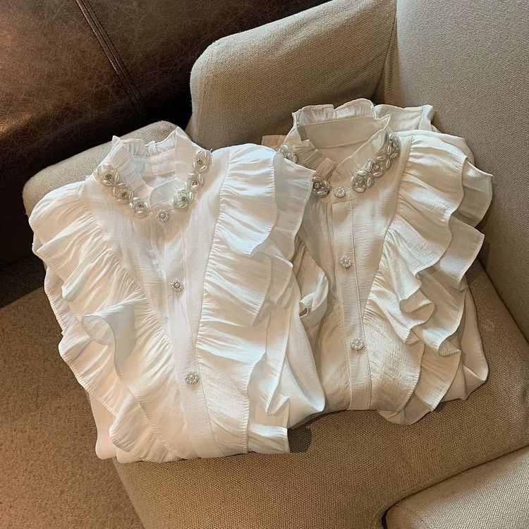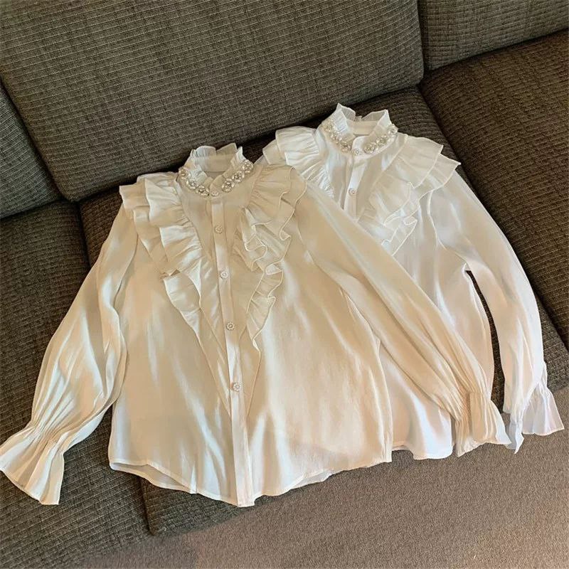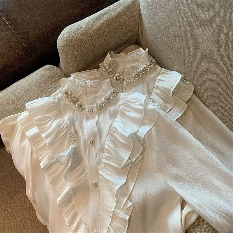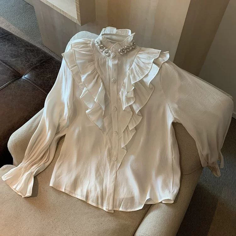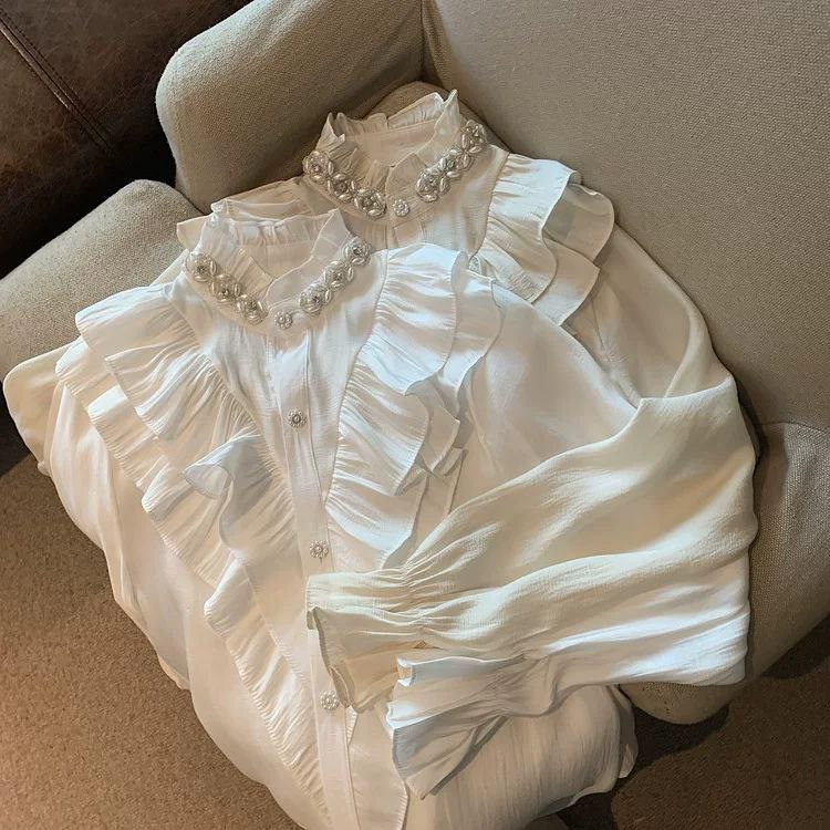 قميص أبيض على الطراز الأوروبي من Tmall لفصل الخريف المبكر - تصميم أنيق من البلاط الفرنسي