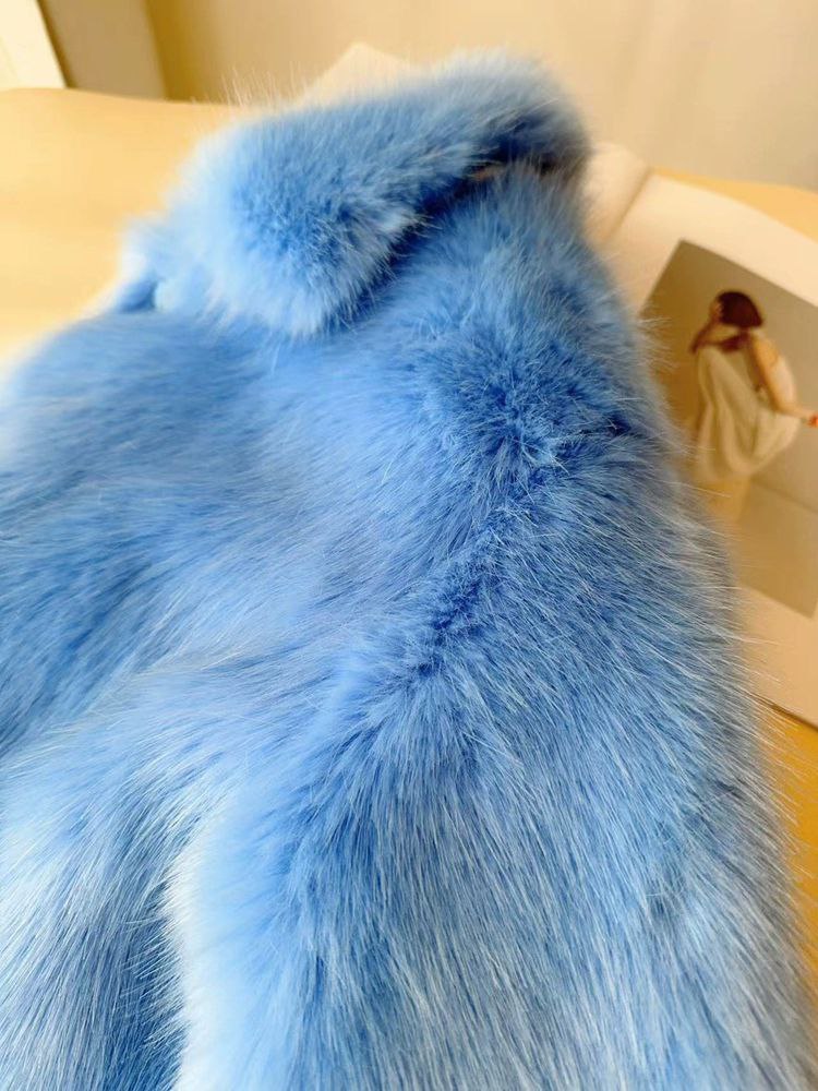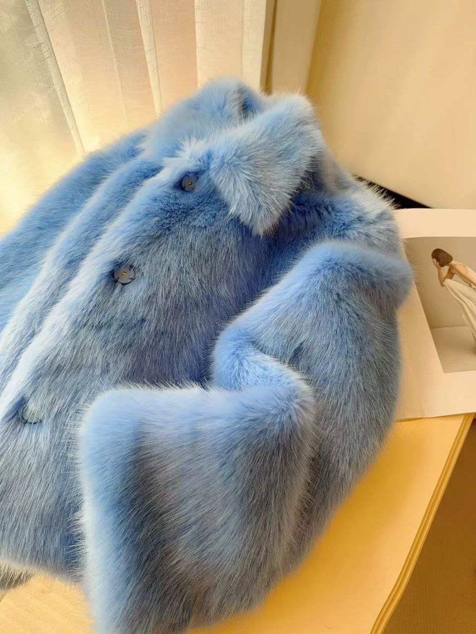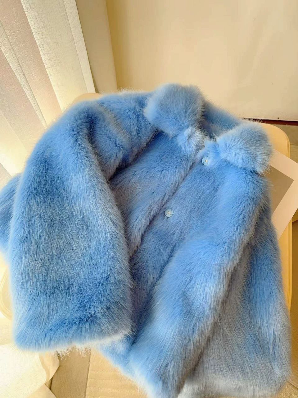 This eco-friendly faux fur coat is a trendy addition to your winter wardrobe. Designed in a youthful style with a modern square collar, it offers both warmth and elegance. The thick short cut makes it perfect for casual outings and chic winter looks.
