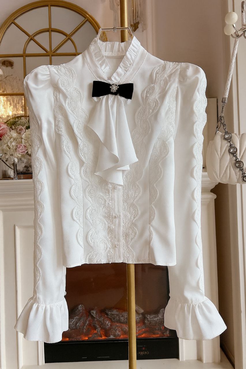 قميص شيفون أبيض أنيق على الطراز الكوري للنساء - بلوزة فضفاضة بأكمام طويلة مناسبة للخريف والشتاء