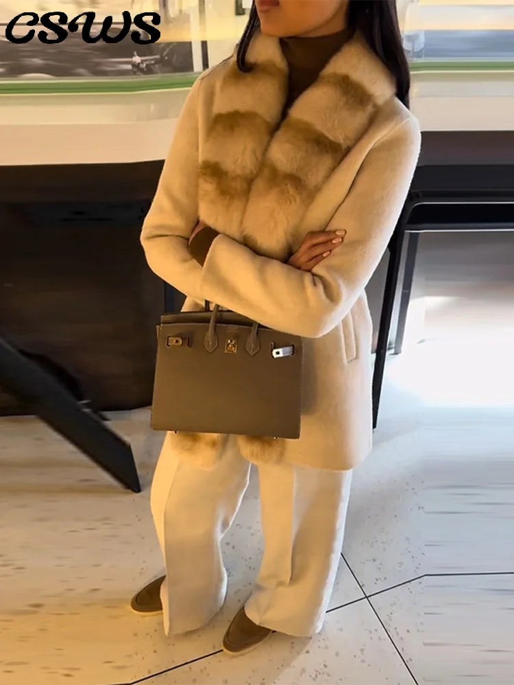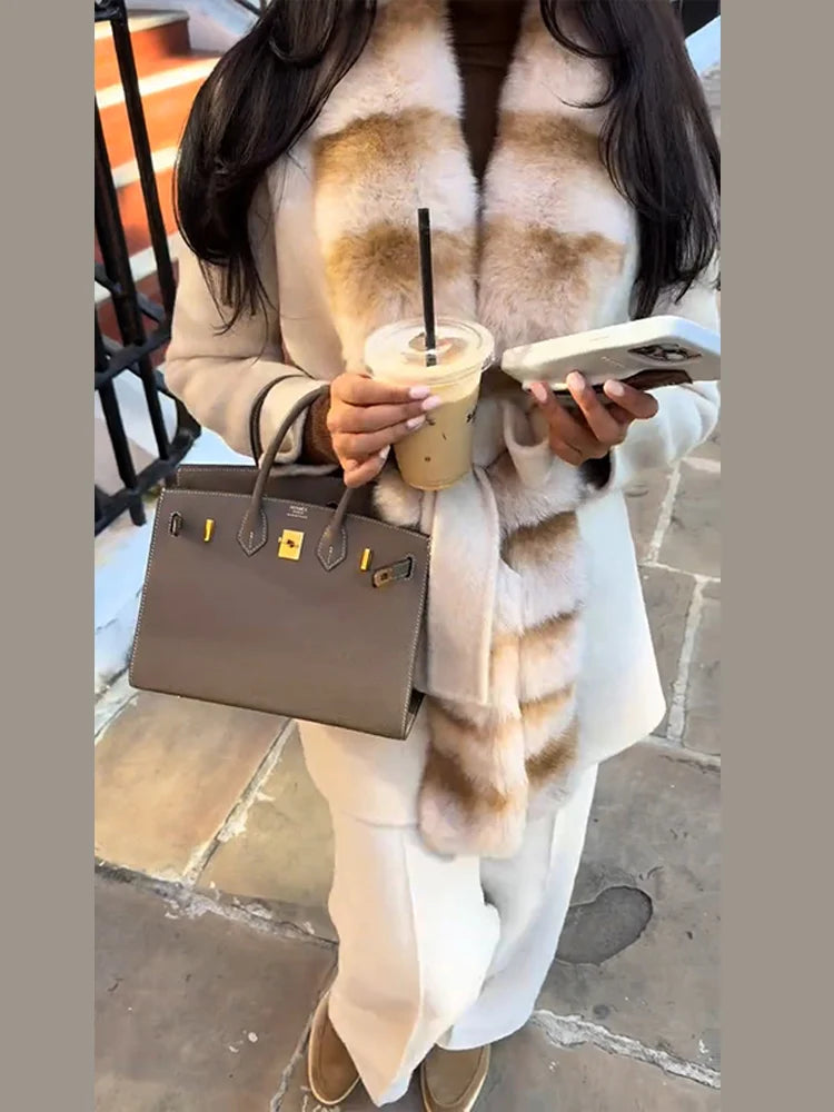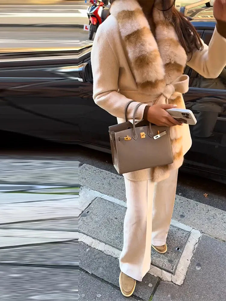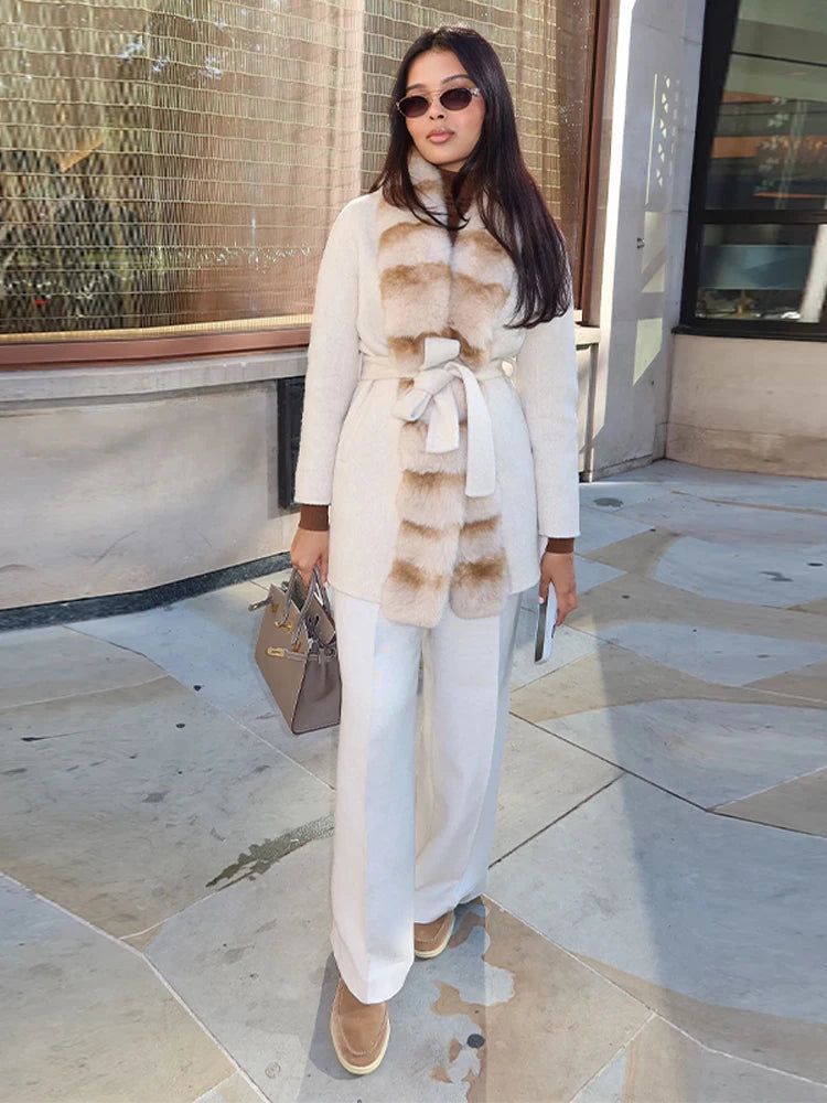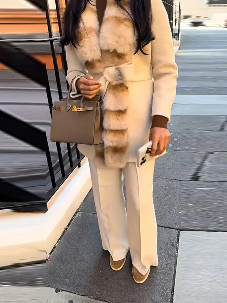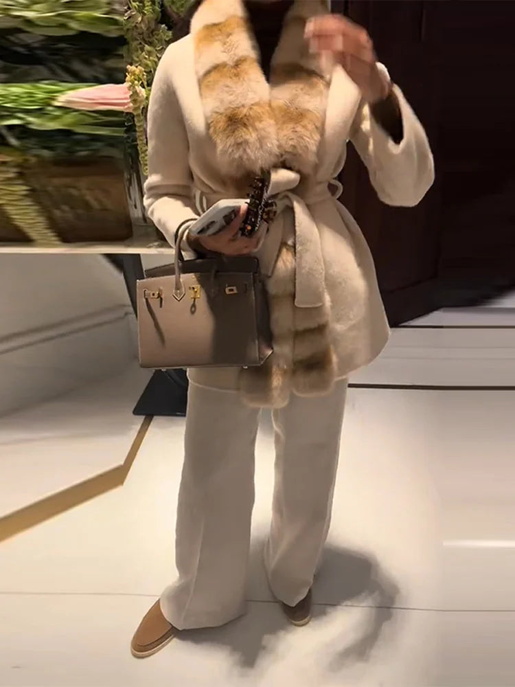 معطف نسائي فاخر بياقة على شكل حرف V وتصميم برباط. مصنوع من البوليستر، مثالي للحفلات والمناسبات الاحتفالية، كعيد الميلاد.