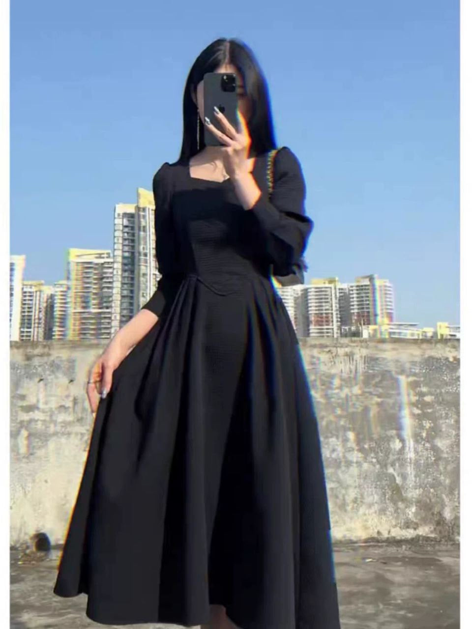 Elegant long-sleeve social dress