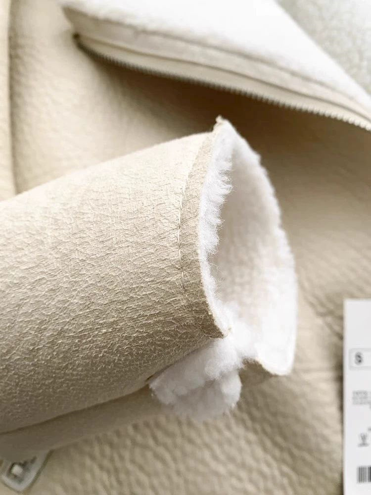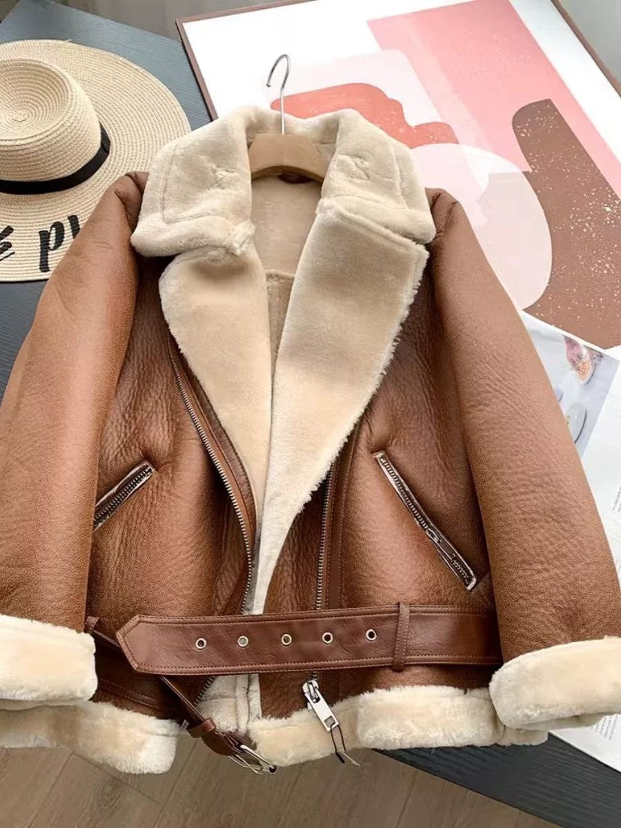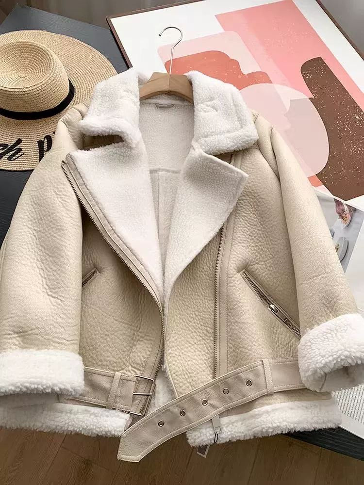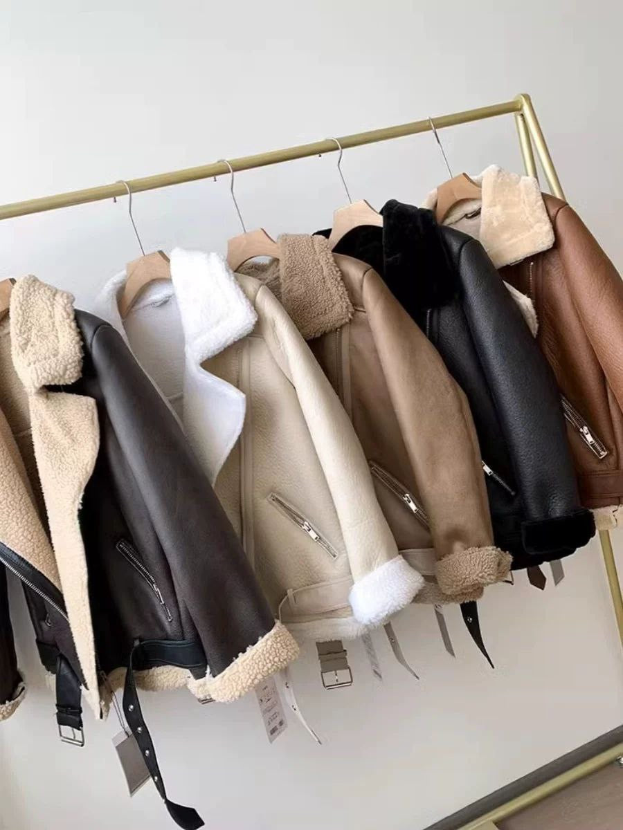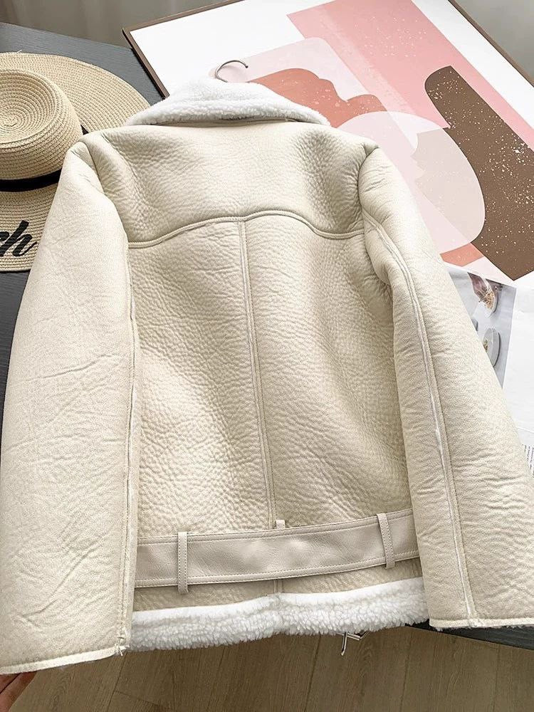 New one-piece coat made of thick lamb wool with an additional velvet biker-style jacket