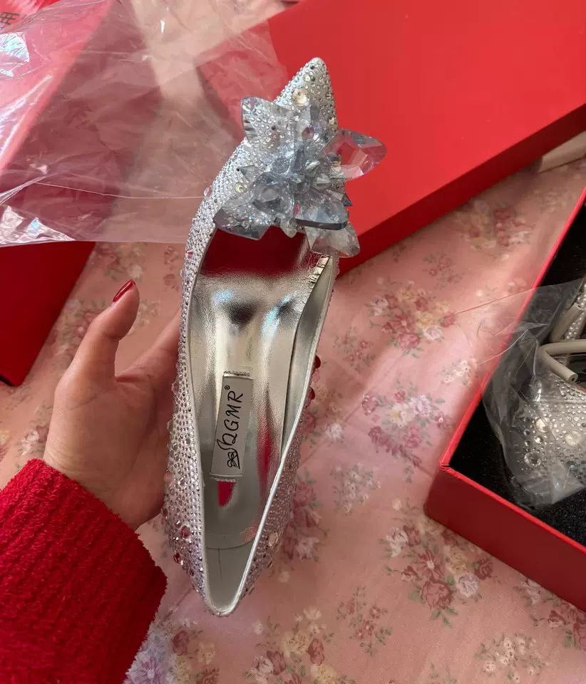 حذاء نسائي بكعب عالٍ مدبب مرصع – لحفلات الزفاف