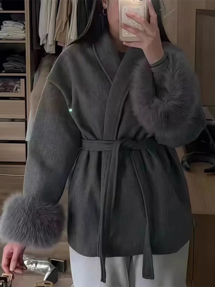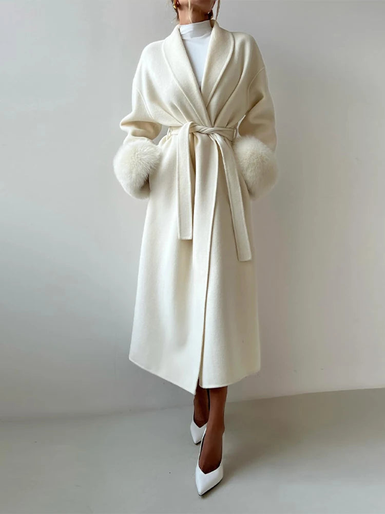 معطف طويل برباط وفتحة رقبة على شكل حرف V