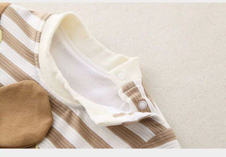 الخامة: قطن سميك وفاخر – اللون: بيج – النمط: أنيق وخريفي – الاستخدام: هدية للمواليد