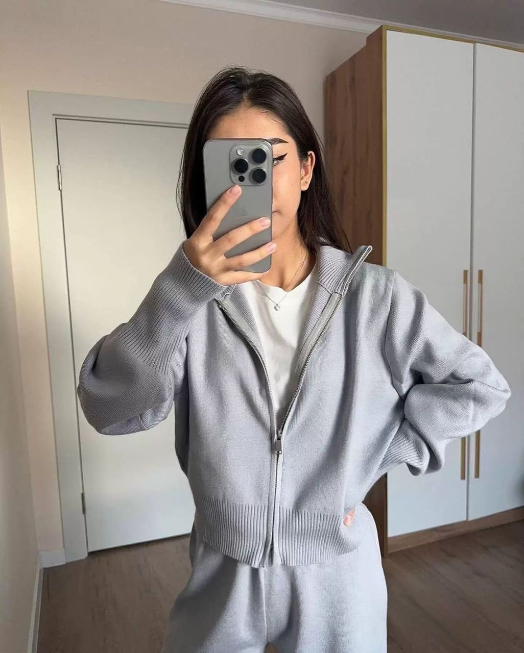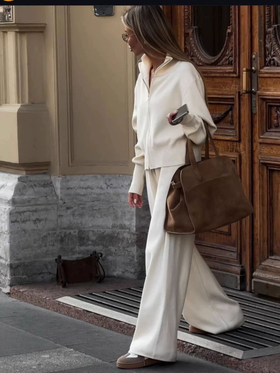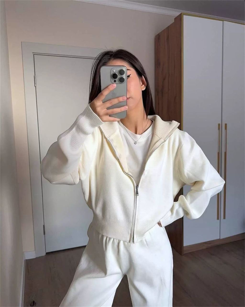 Modischer Herbst-Look mit engem Crop-Top und gestrickter Hose – Europäischer & Amerikanischer Stil