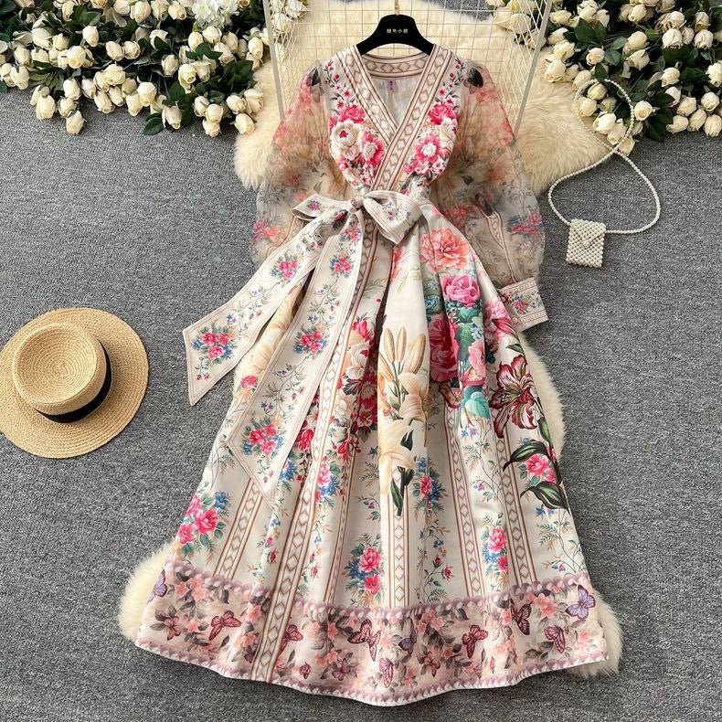 Elegant French Printed Long Dress – Sizes M to 2XL