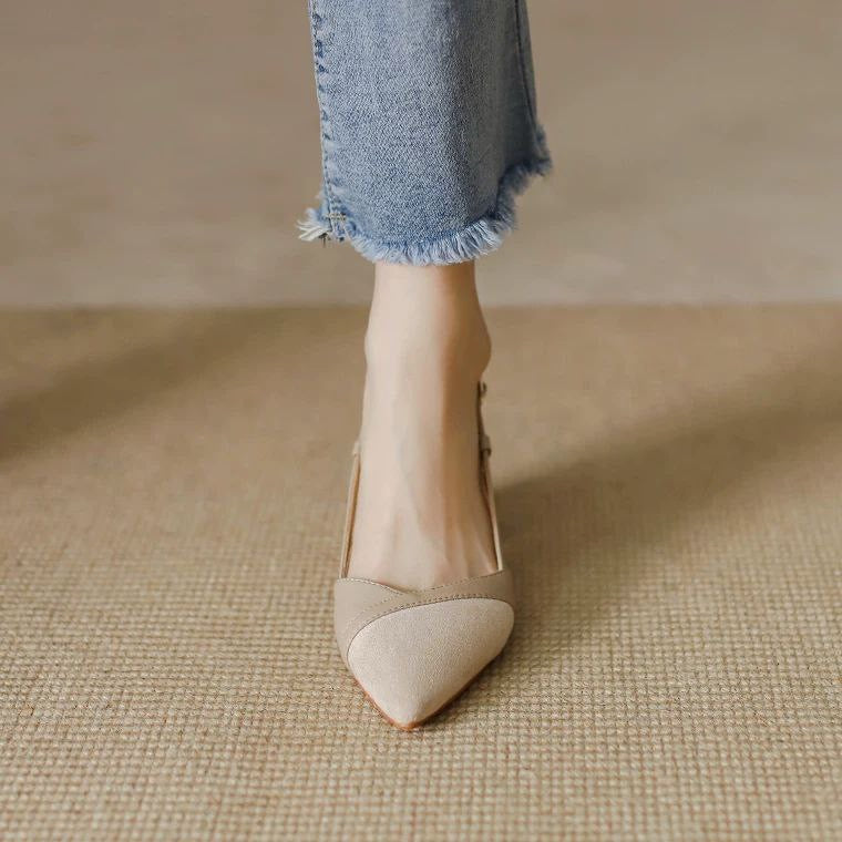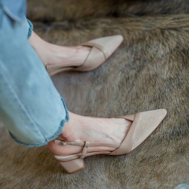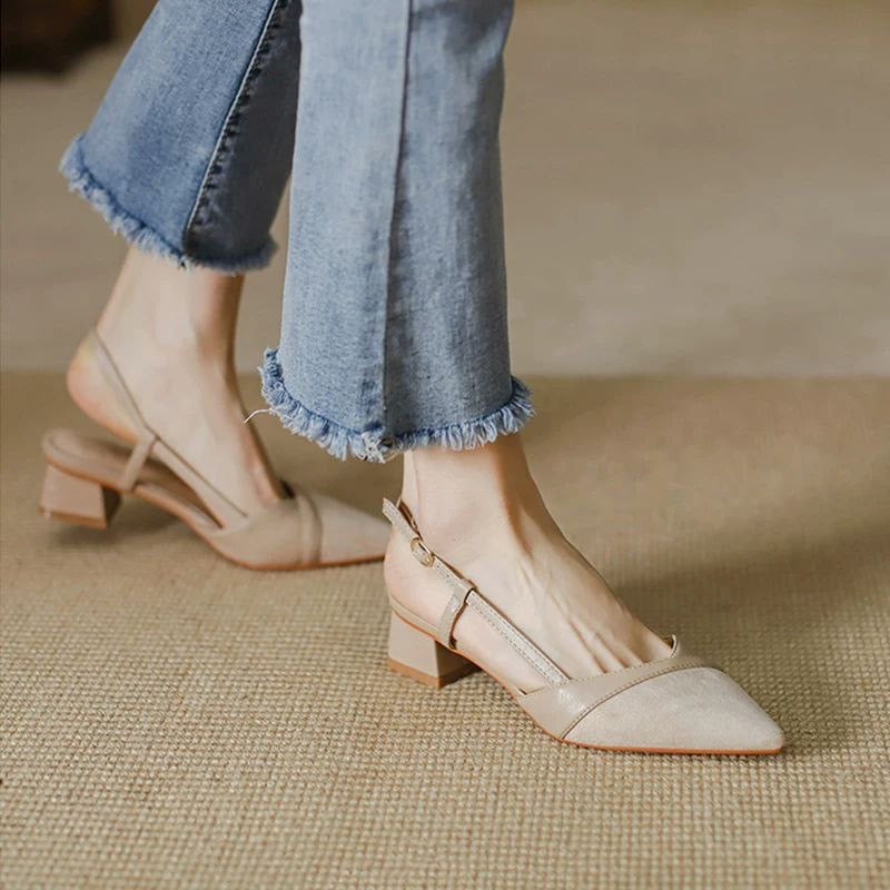 Fairy-Inspired Pointed Toe Sandals – Elegant Summer Look with Mid Block Heel