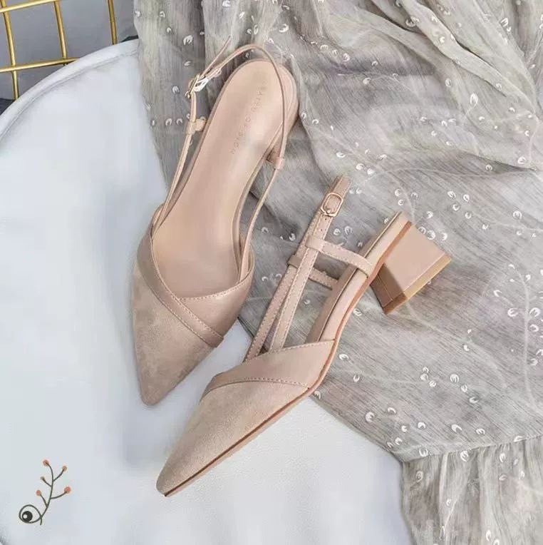 صندل مدبب للنساء، على شكل جنية، طراز جديد لصيف، متعدد الاستخدامات، كعب متوسط، مشبك واحد، سميك