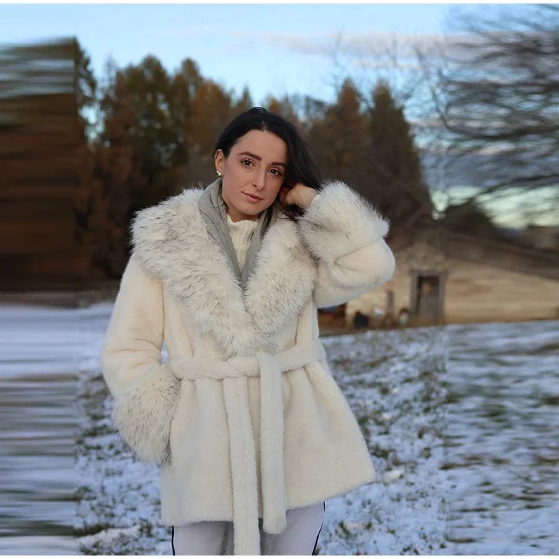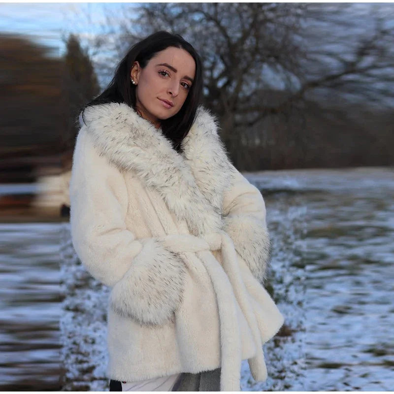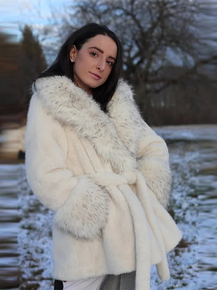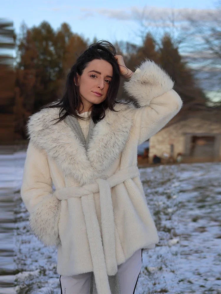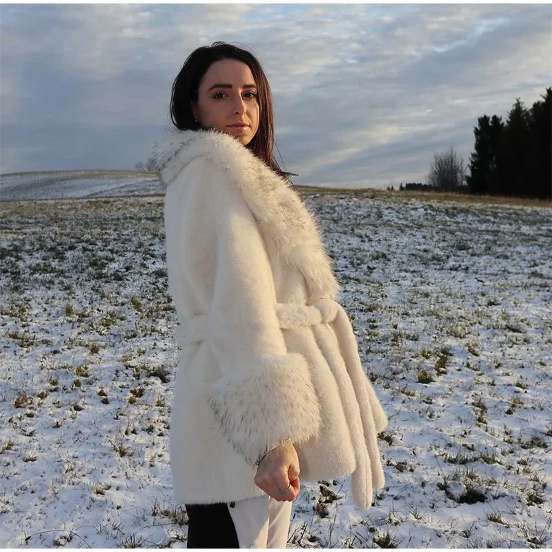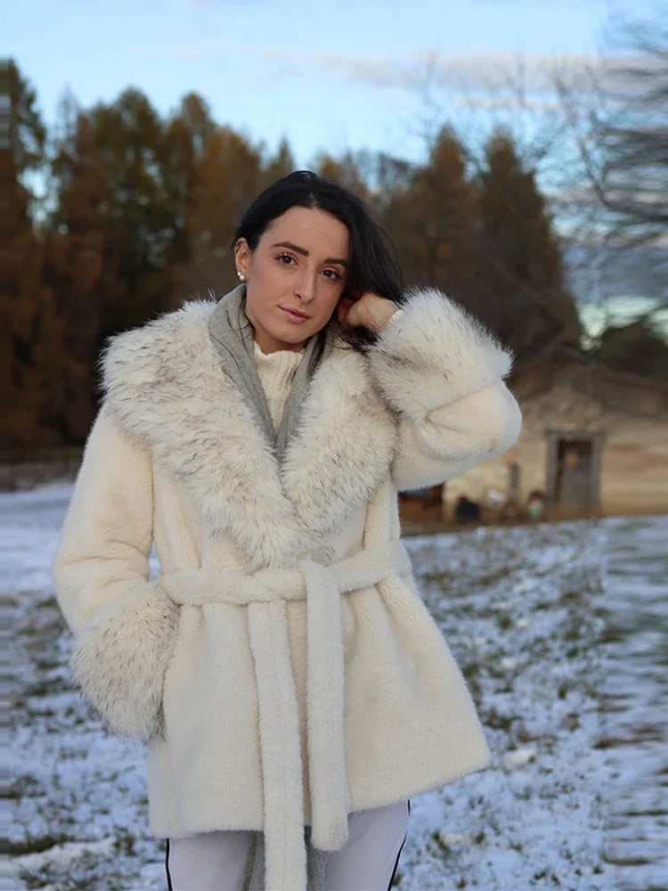 معطف كاجوال متوسط الطول بياقة عالية وتفاصيل رباط. مصنوع من مزيج القطن والبوليستر لراحة مثالية في الخريف والشتاء.