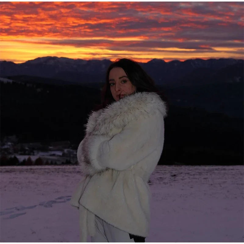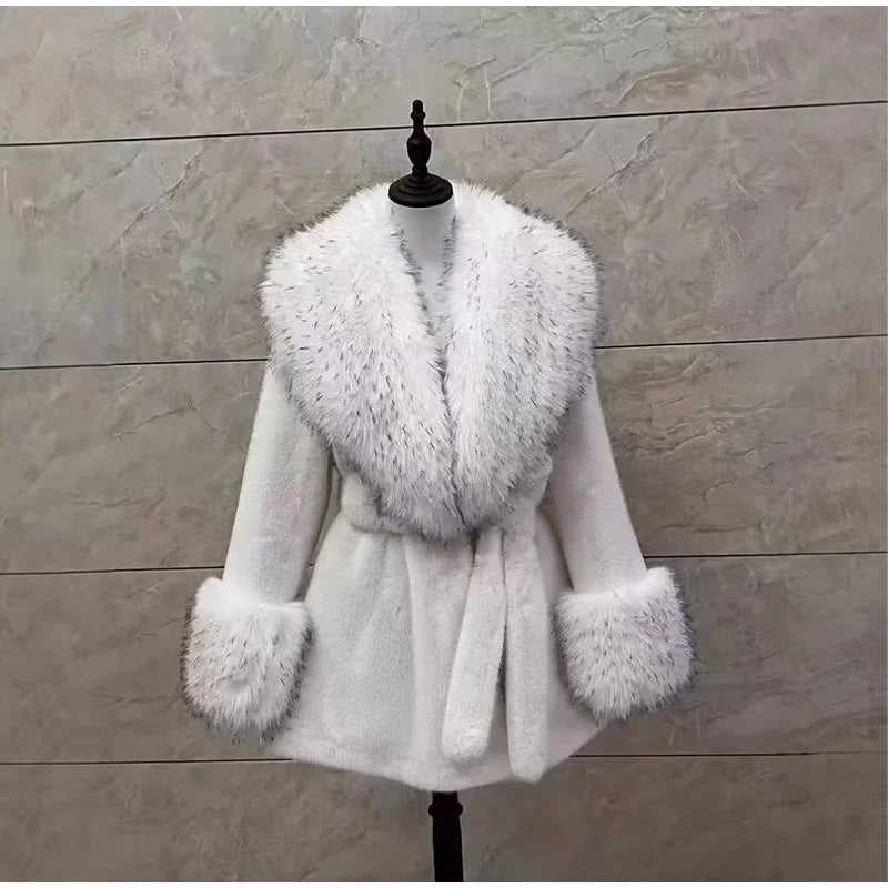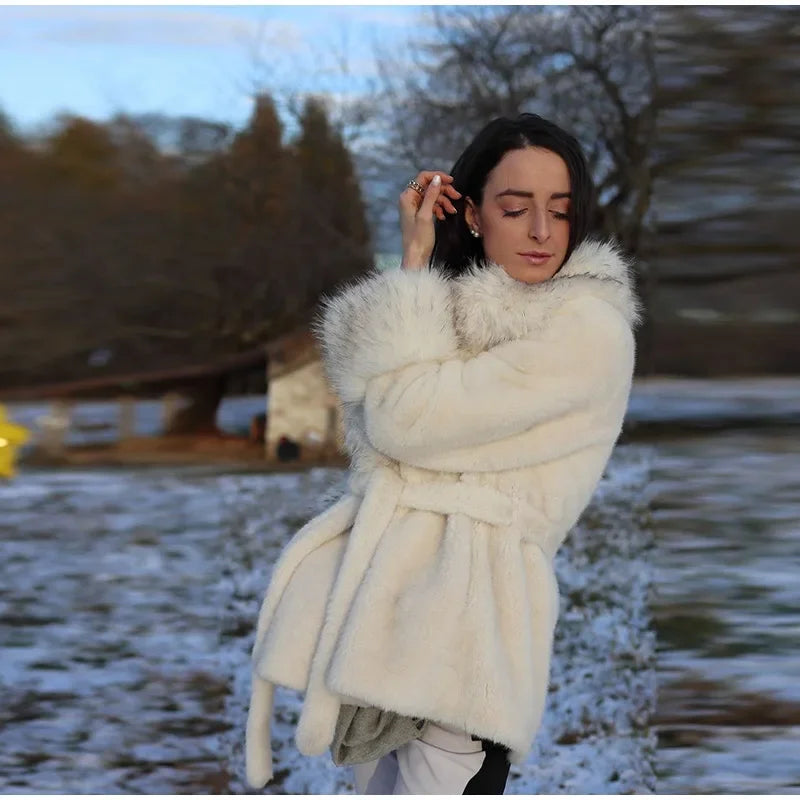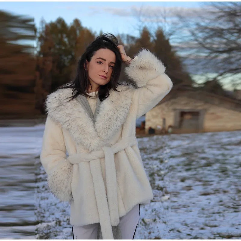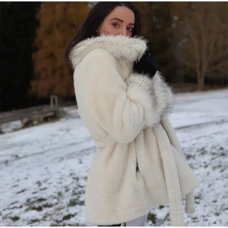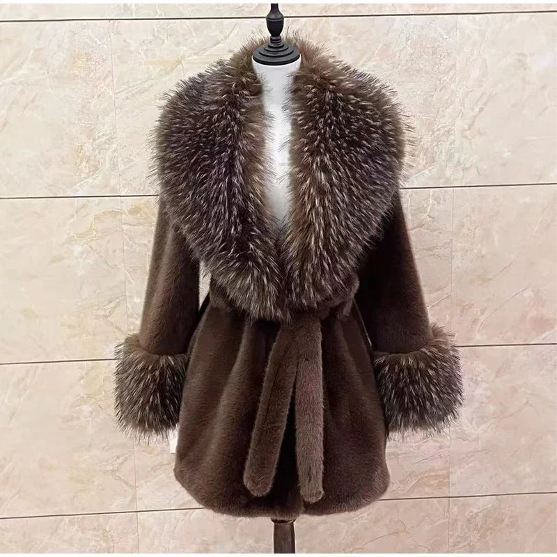 معطف كاجوال متوسط الطول بياقة عالية وتفاصيل رباط. مصنوع من مزيج القطن والبوليستر لراحة مثالية في الخريف والشتاء.