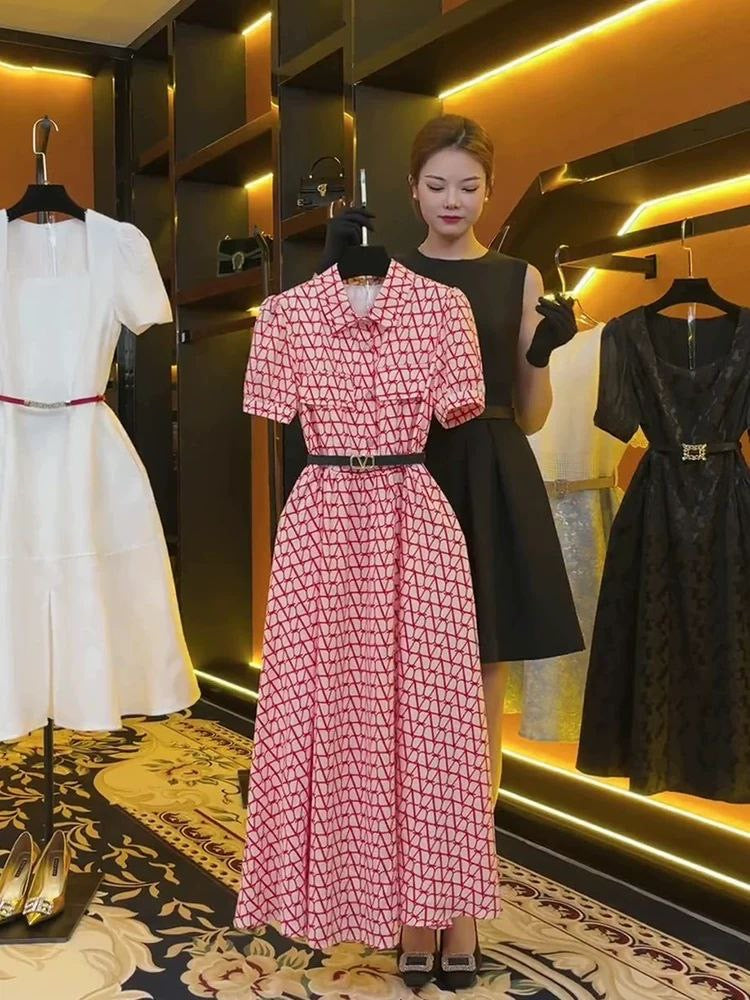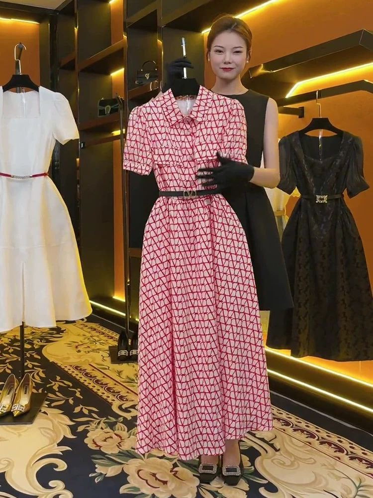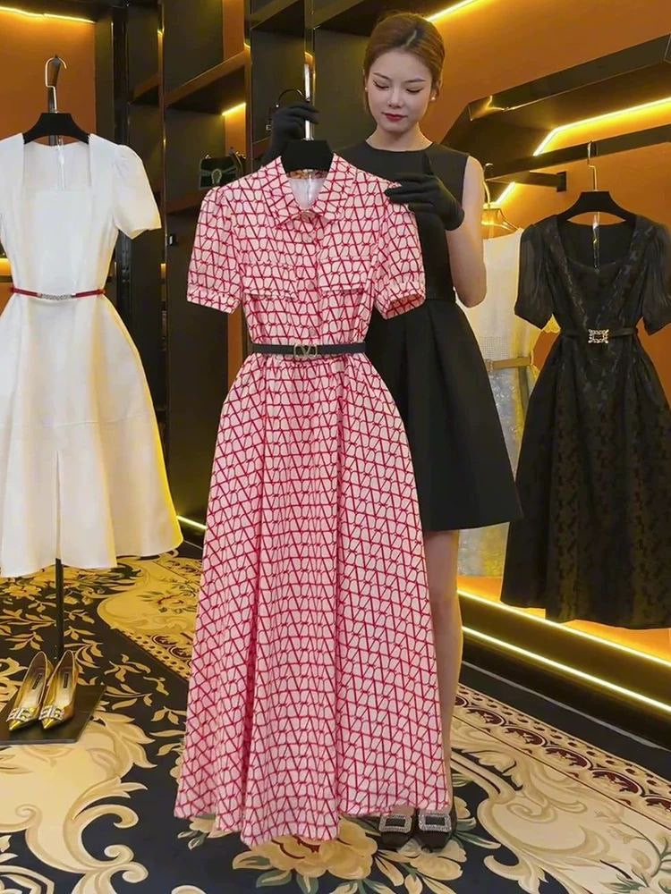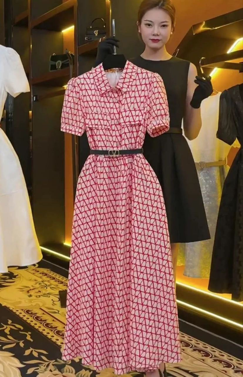 Slim summer women’s dress with pink checkered polo top – Covers the belly and gives a youthful look