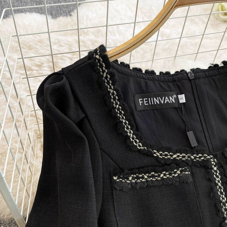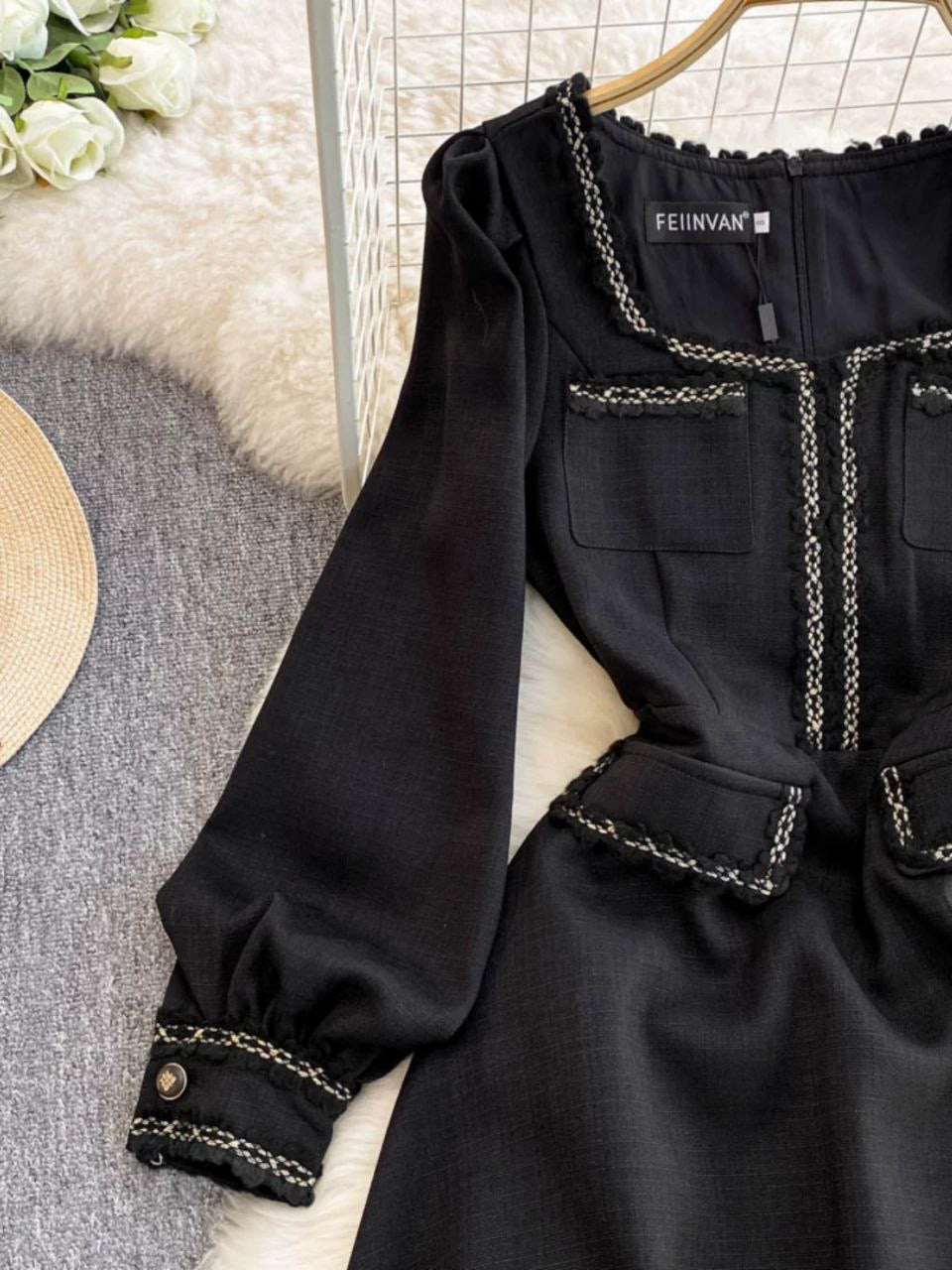 Chanel-style A-line Fall/Winter Slim Waist Mini Dress