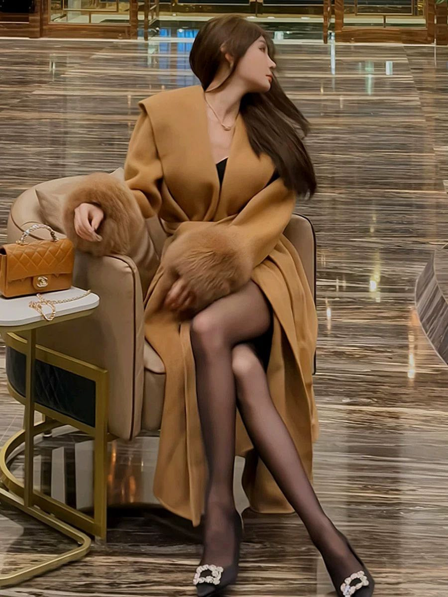 معطف صوفي متوسط الطول على الطراز الفرنسي خريف وشتاء