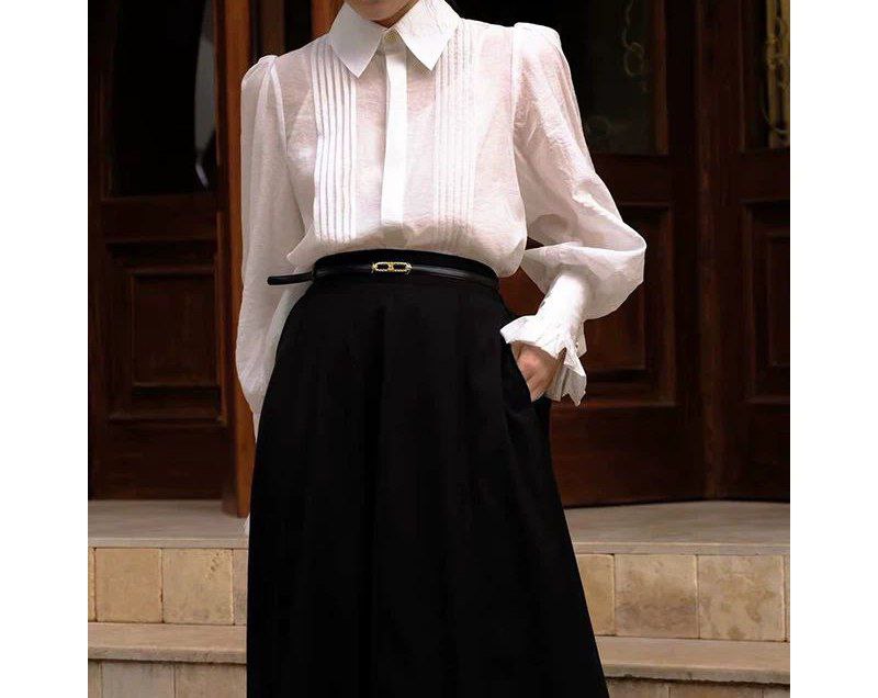 يتميز هذا القميص الفرنسي من تيمول بتصميم أنيق مستوحى من البلاط الملكي بأكمام طويلة، يضفي لمسة راقية وأنثوية. يوفر القماش الفاخر الراحة والرقي والأناقة الخالدة، ما يجعله مثاليًا للإطلالات الرسمية وغير الرسمية.
