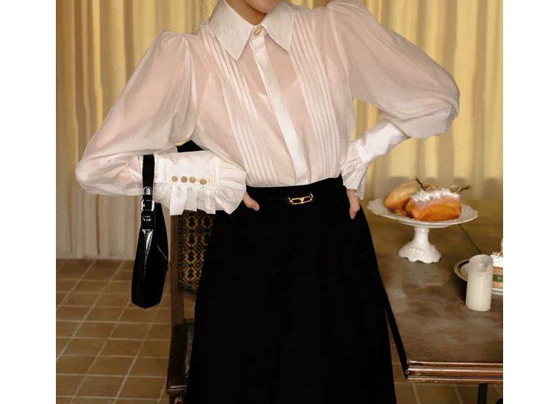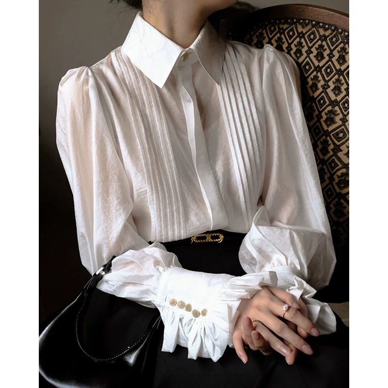 قميص نسائي أبيض بأكمام طويلة من تيمول - أنيق وعصري