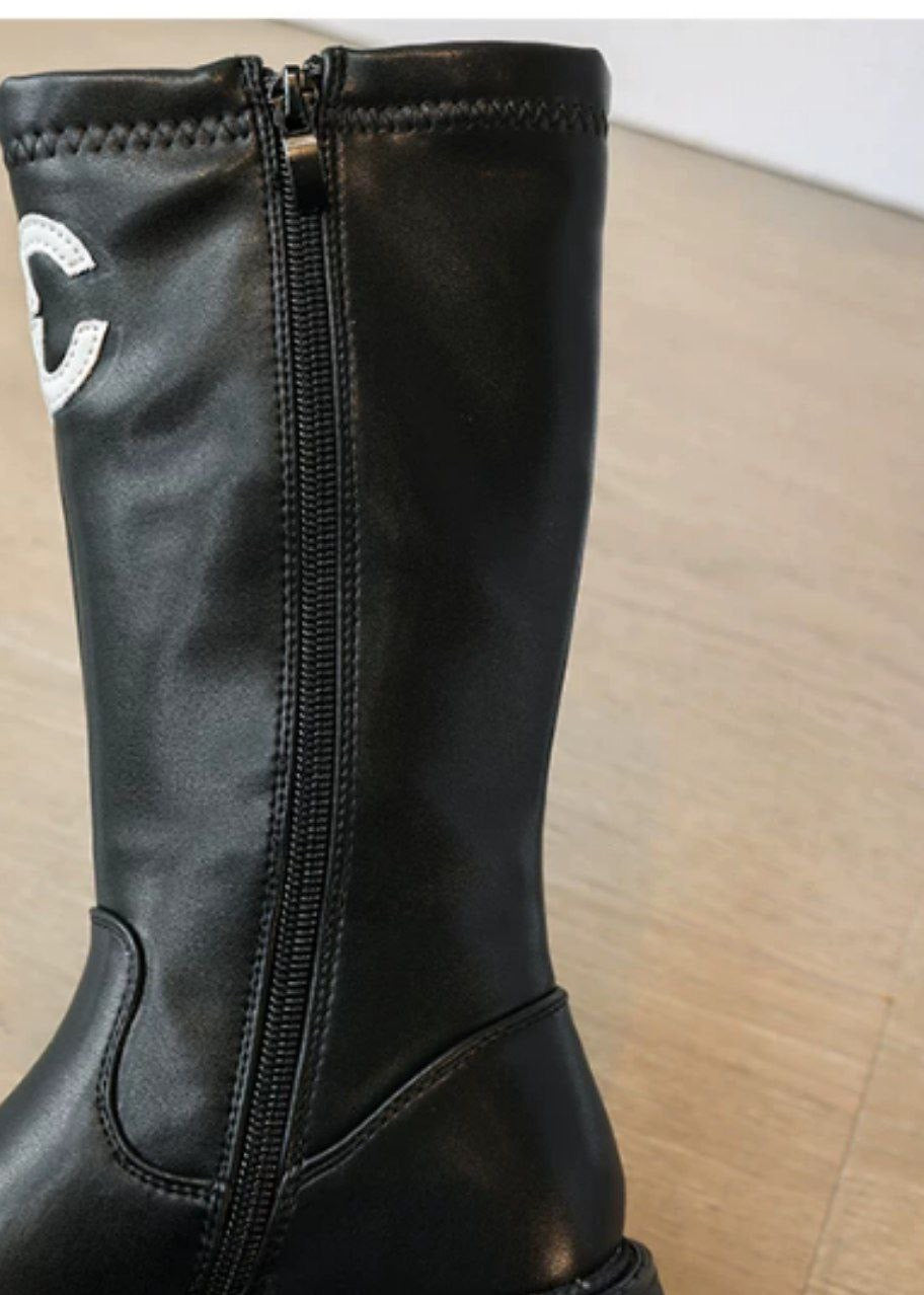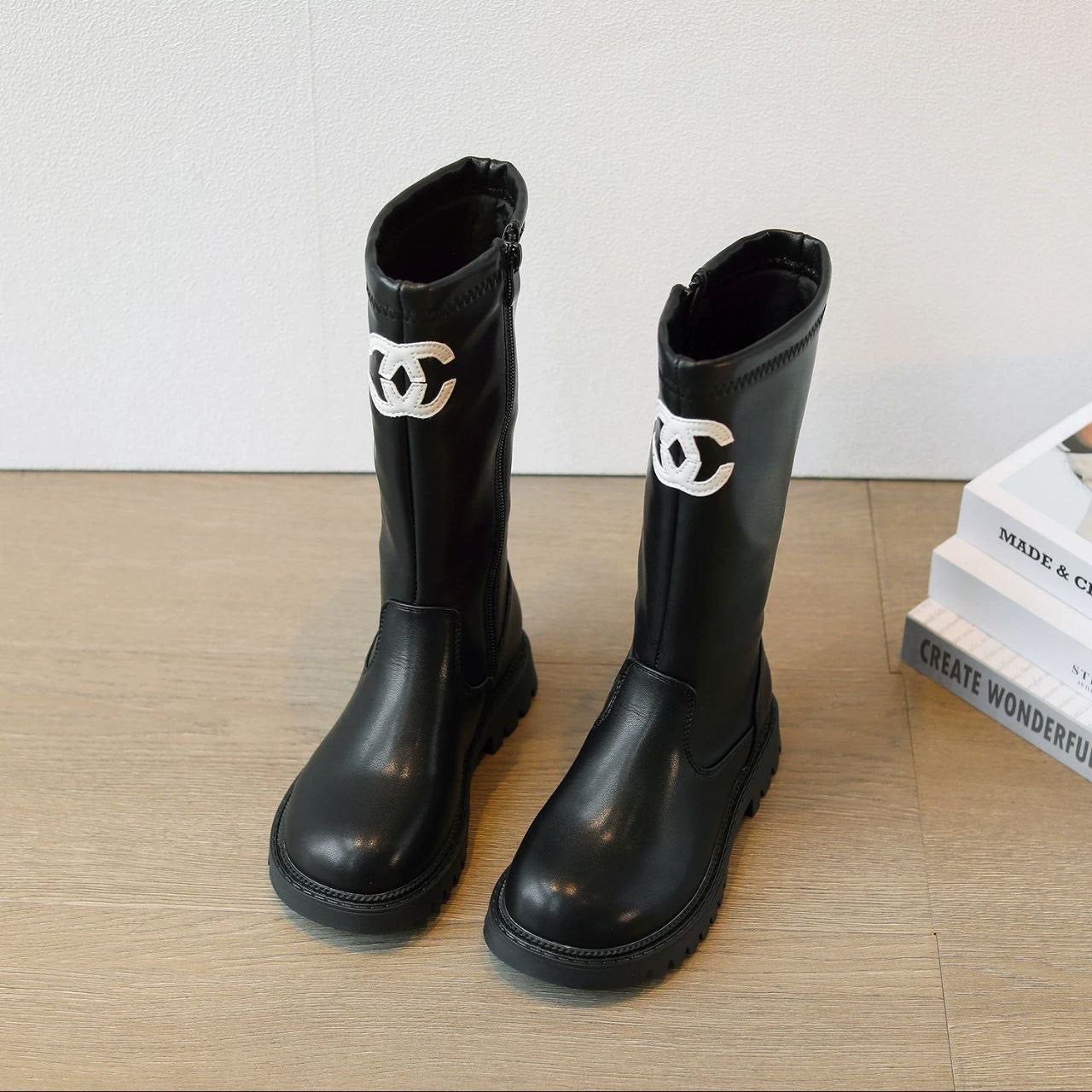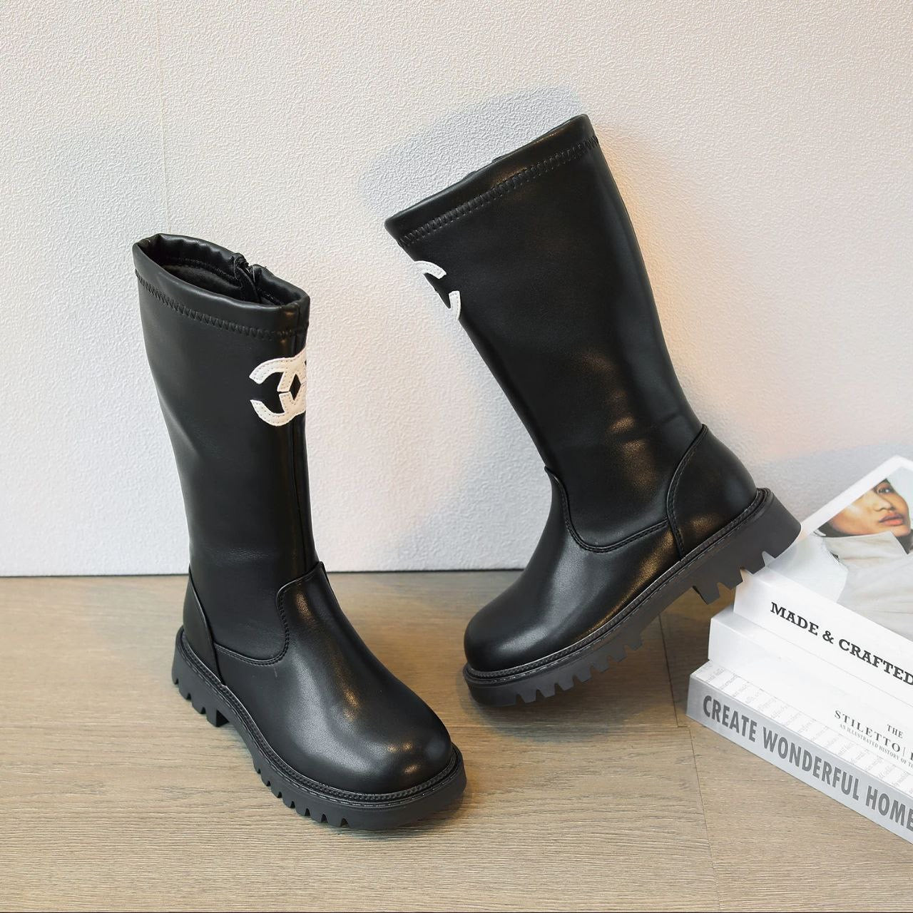 حذاء بناتي طويل بطراز شانيل البريطاني