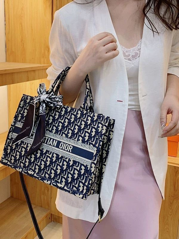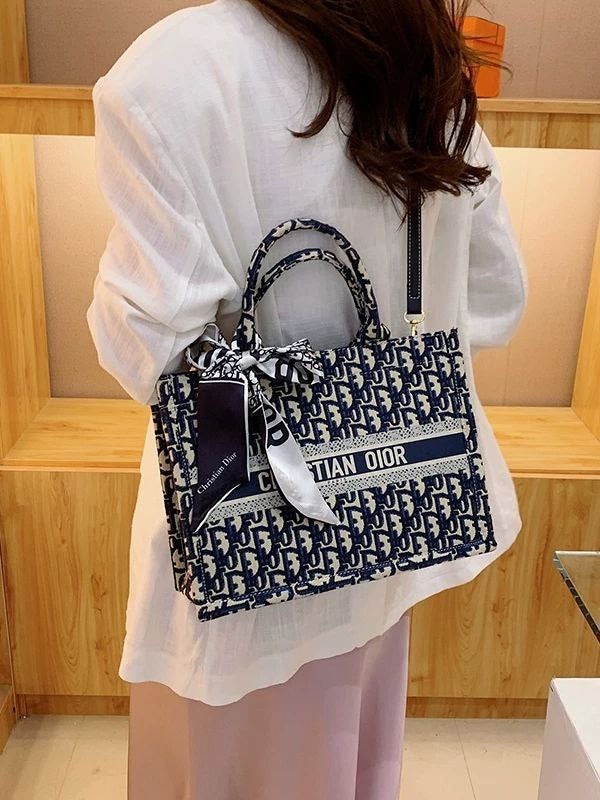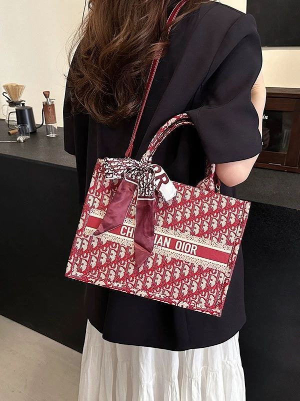 حقيبة حمراء كبيرة السعة للنساء 2025 حقيبة قماش مطبوعة جديدة حقيبة يد راقية
