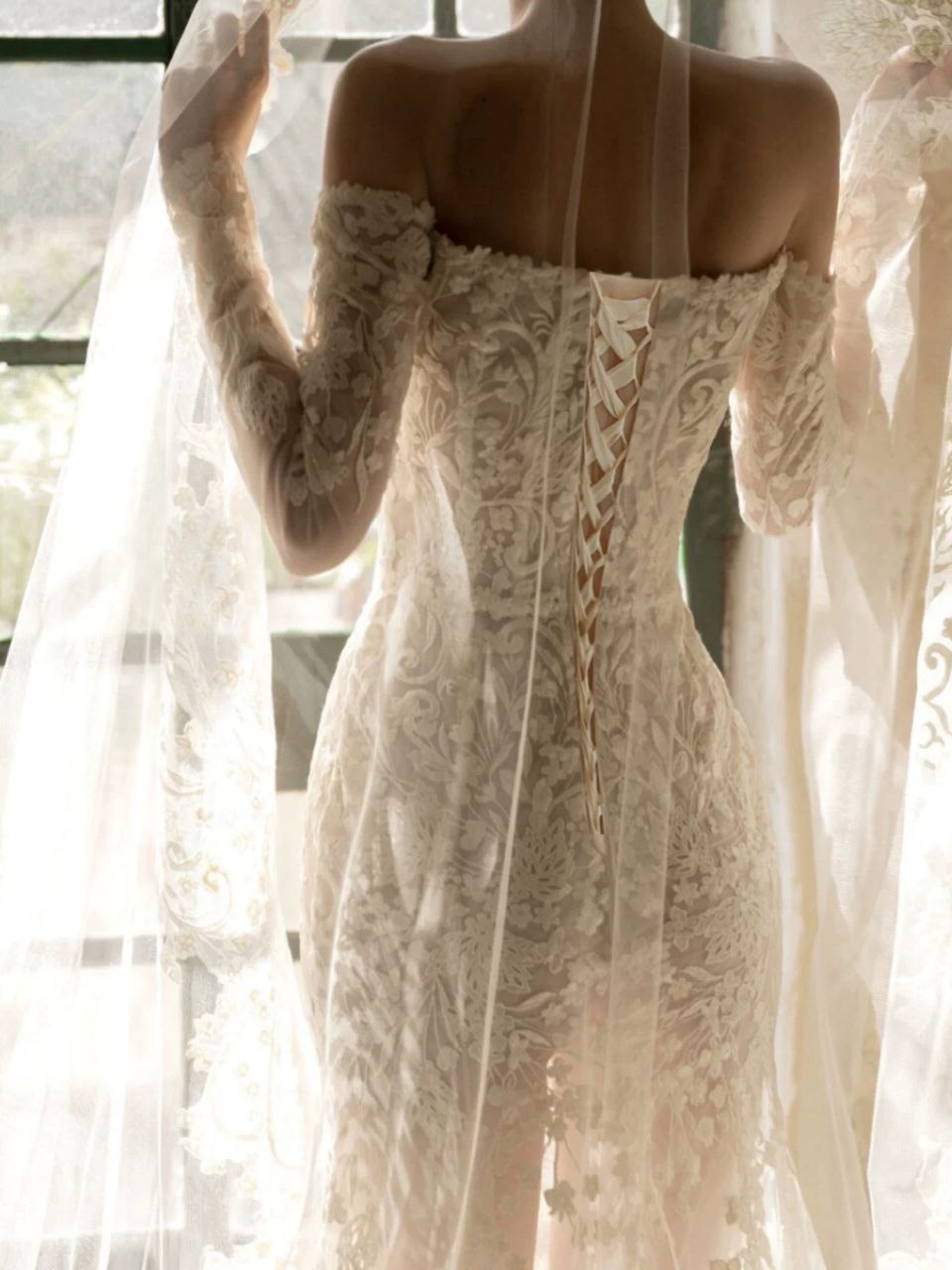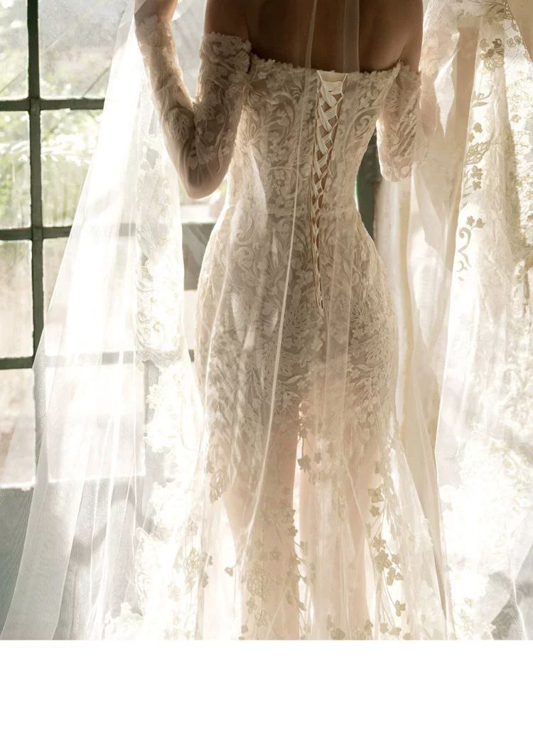 High-Quality French Lace One-Shoulder Mermaid Wedding Dress