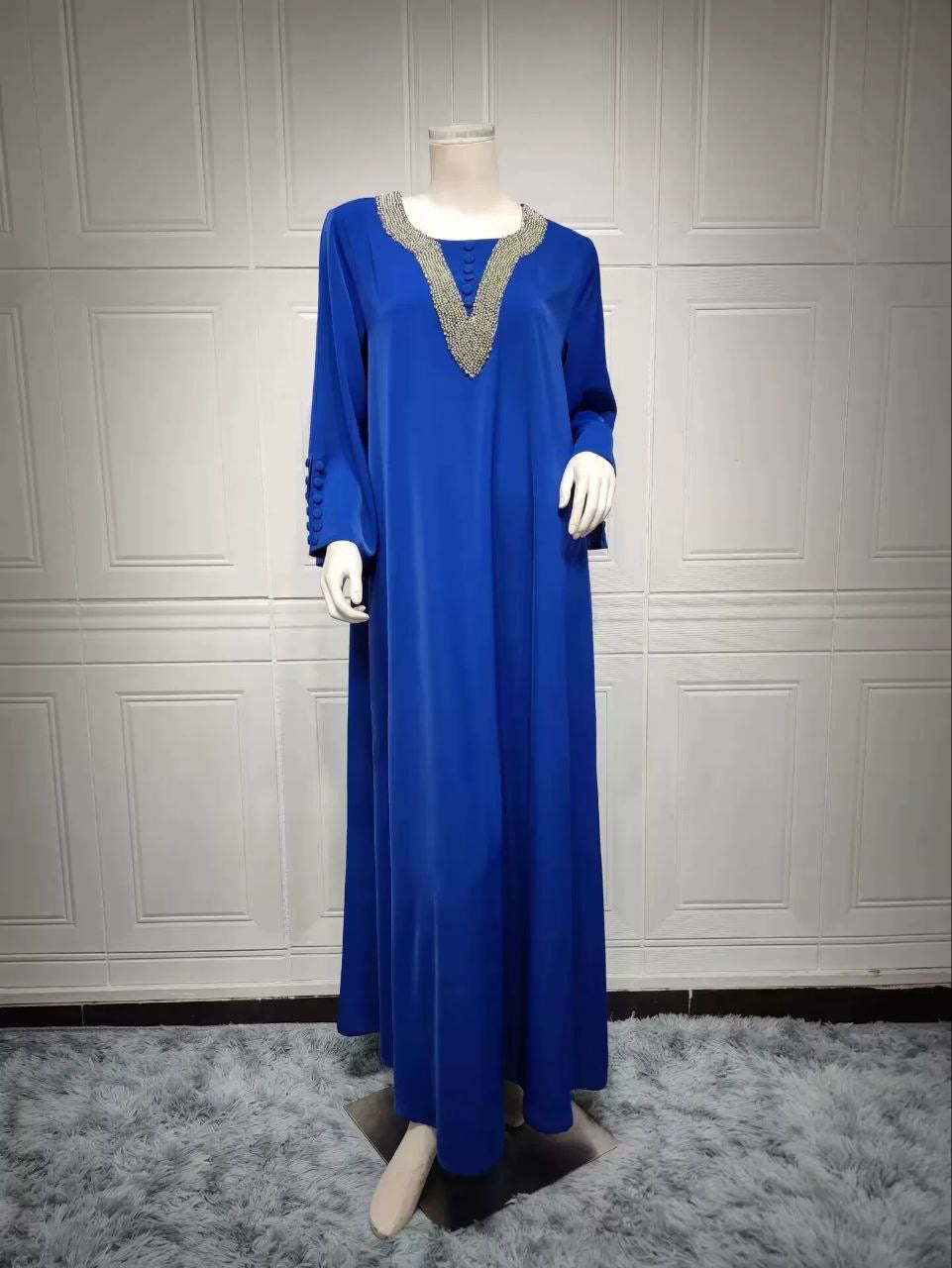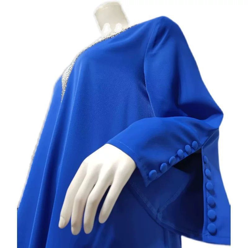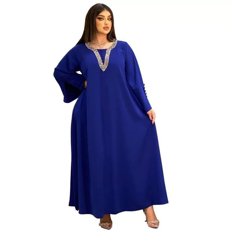 Elegant ethnic-style dress with hand-beaded large gems and hot drill design – long sleeves – 100% soft high-quality polyester – perfect for events