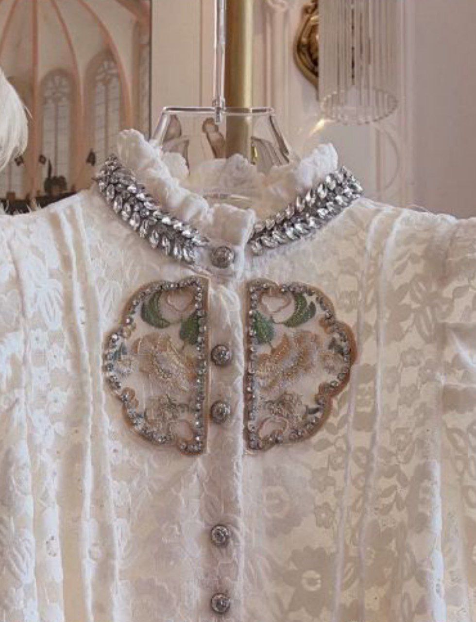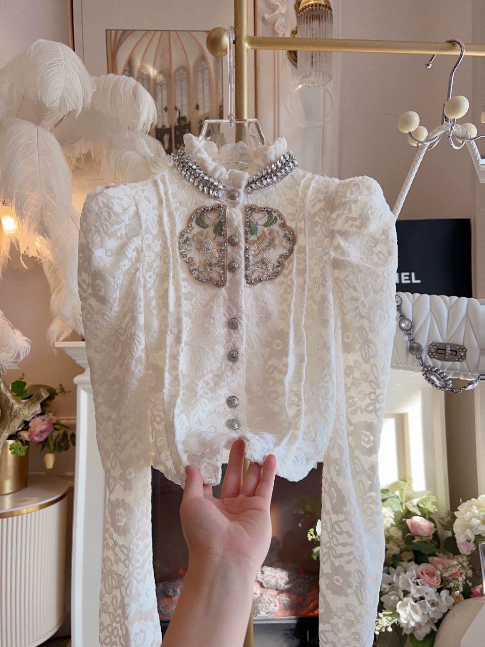 هذه البلوزة الخريفية الكورية مستوحاة من الدانتيل المتقن مع زخارف خرزية كثيفة، مما يمنحها إطلالة فريدة وأنيقة. صُممت للنساء، بأكمام دانتيل طويلة وتصميم رقيق وراقي، مثالية لنزهات الخريف أو المناسبات الخاصة.