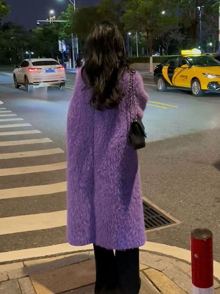 Korean Lazy-Style Knit Cardigan – Loose Fit, Light Purple Spring Mood