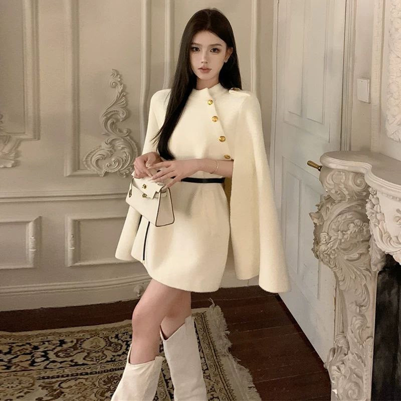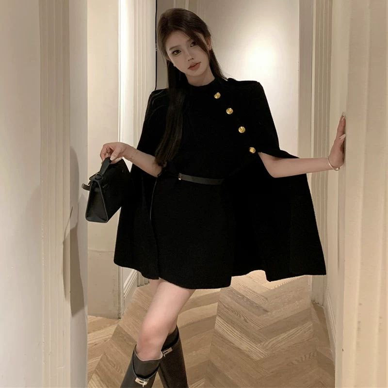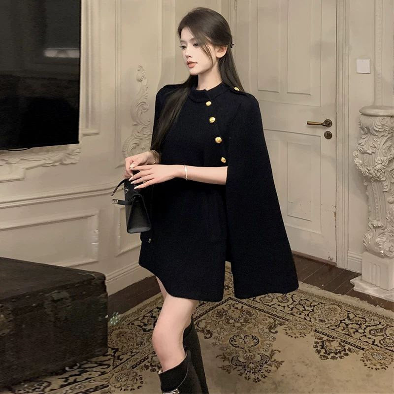 Wool shawl cape coat for women – best-selling autumn/winter – short loose British-style wool coat