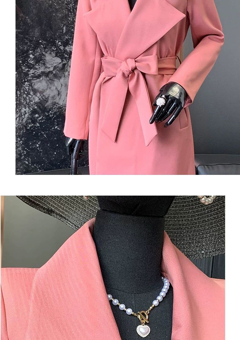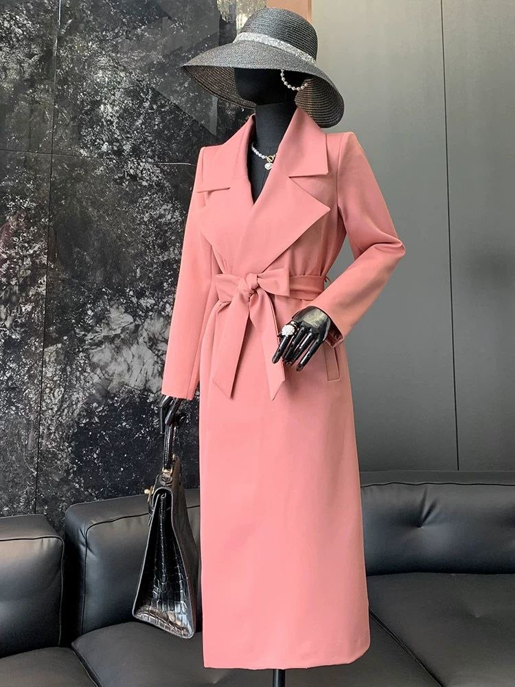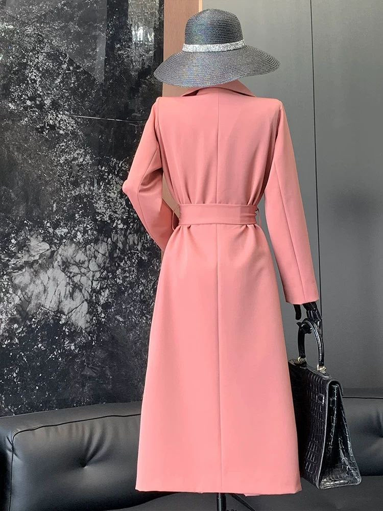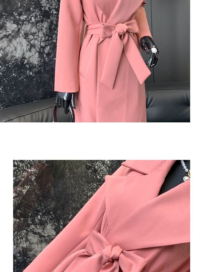 معطف وردي بياقة كبيرة بتصميم كوري لموسم الخريف 2025، وسترة طويلة مقاومة للبرد بأكمام طويلة