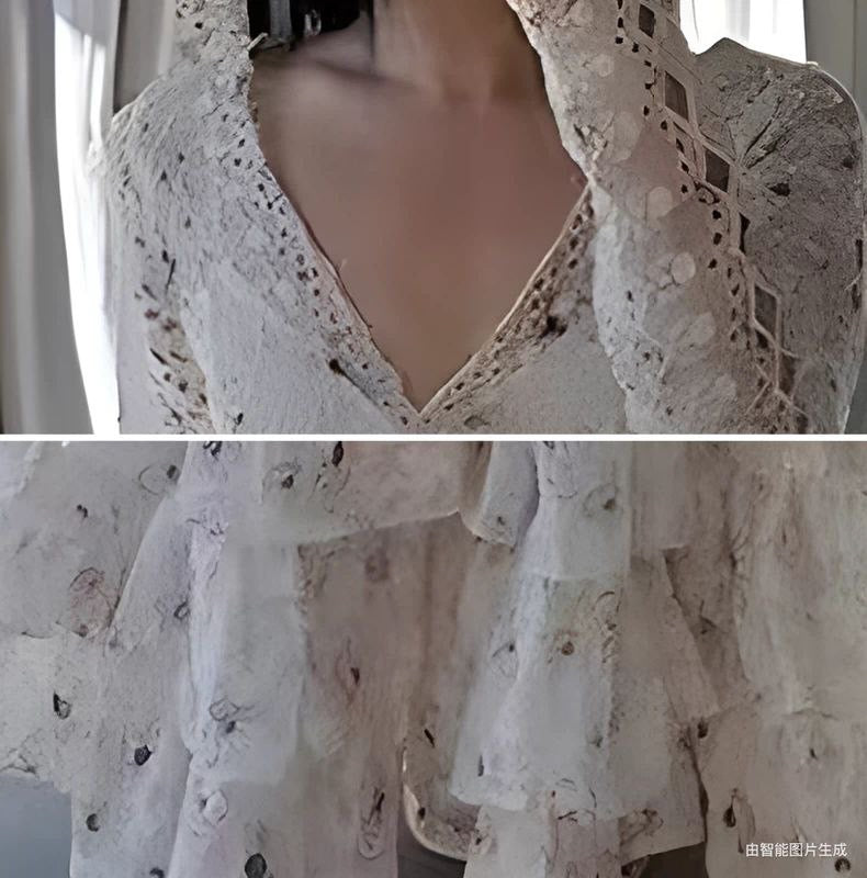 تطريز أسترالي ثقيل من الحرير والقطن بأكمام طويلة وكشكشة زهرية مجوفة عتيقة