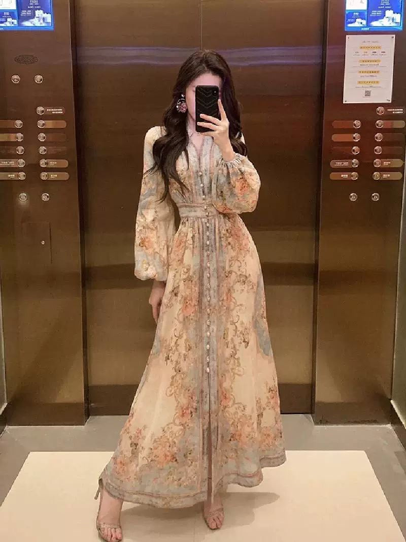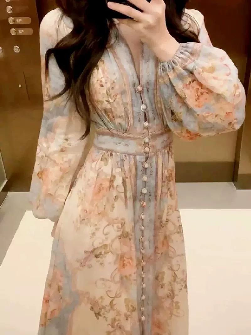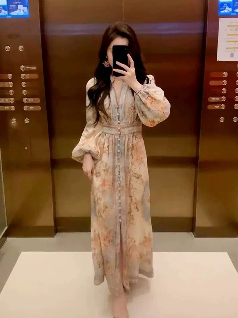 Size S: Length 128 cm, Bust 84 cm, Shoulder 35 cm, Sleeve 62 cm — Perfect for slim figures with a soft feminine cut.