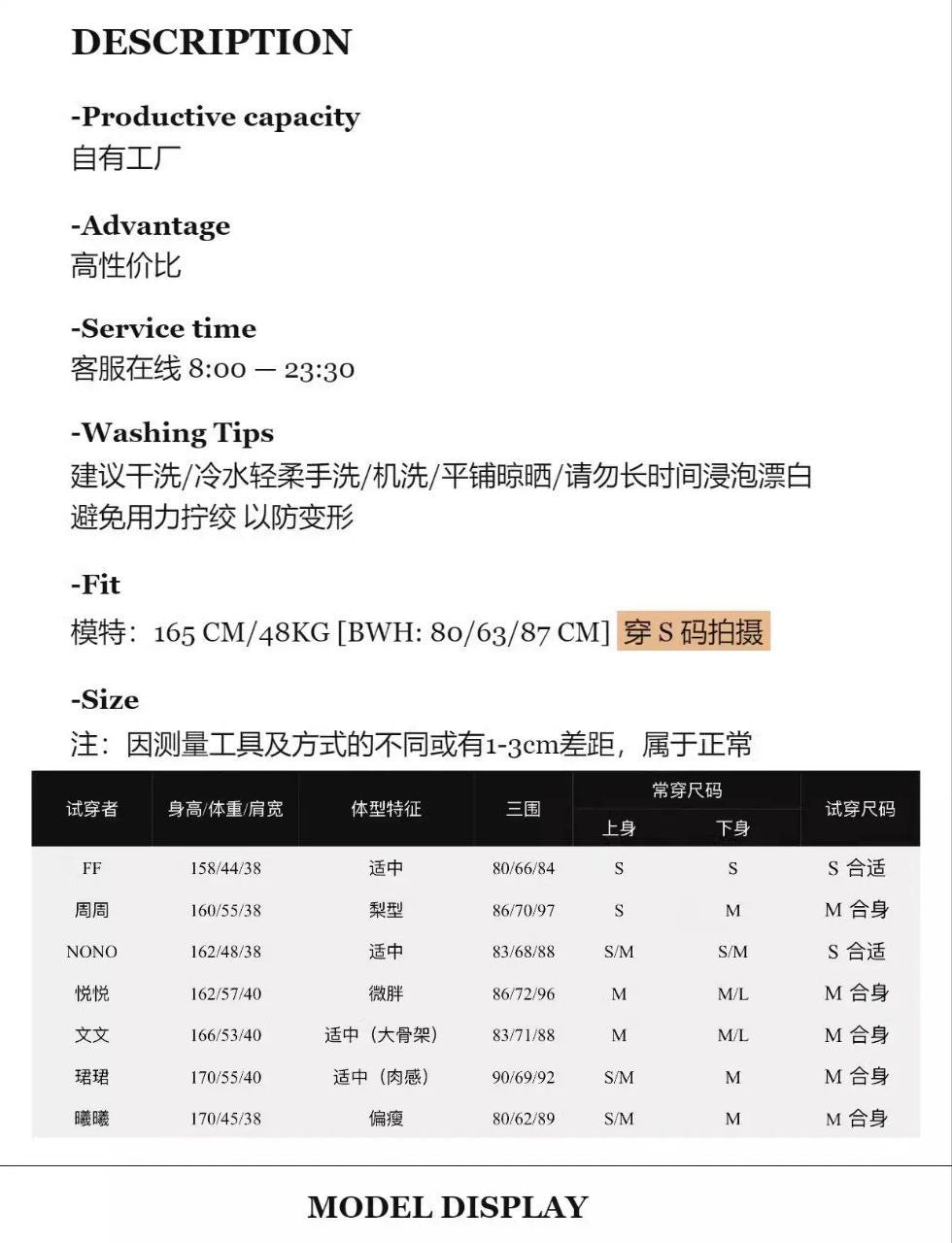 • S (الطول [158]، الوزن [44]، الصدر [80]، الخصر [66]، الورك [84])