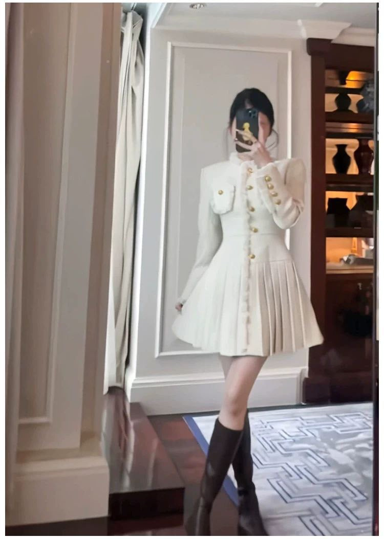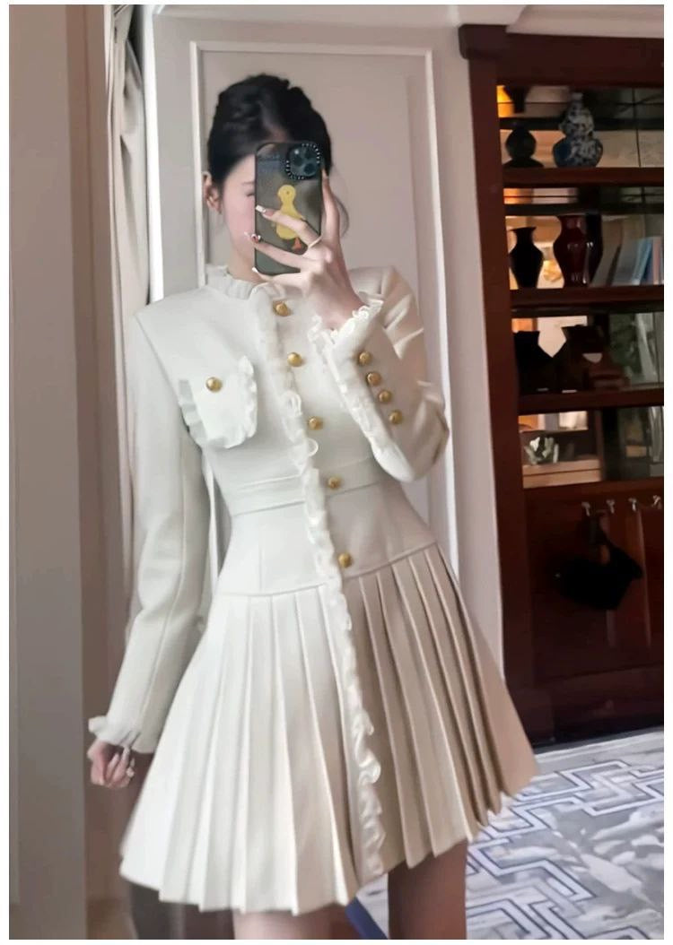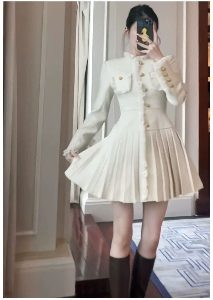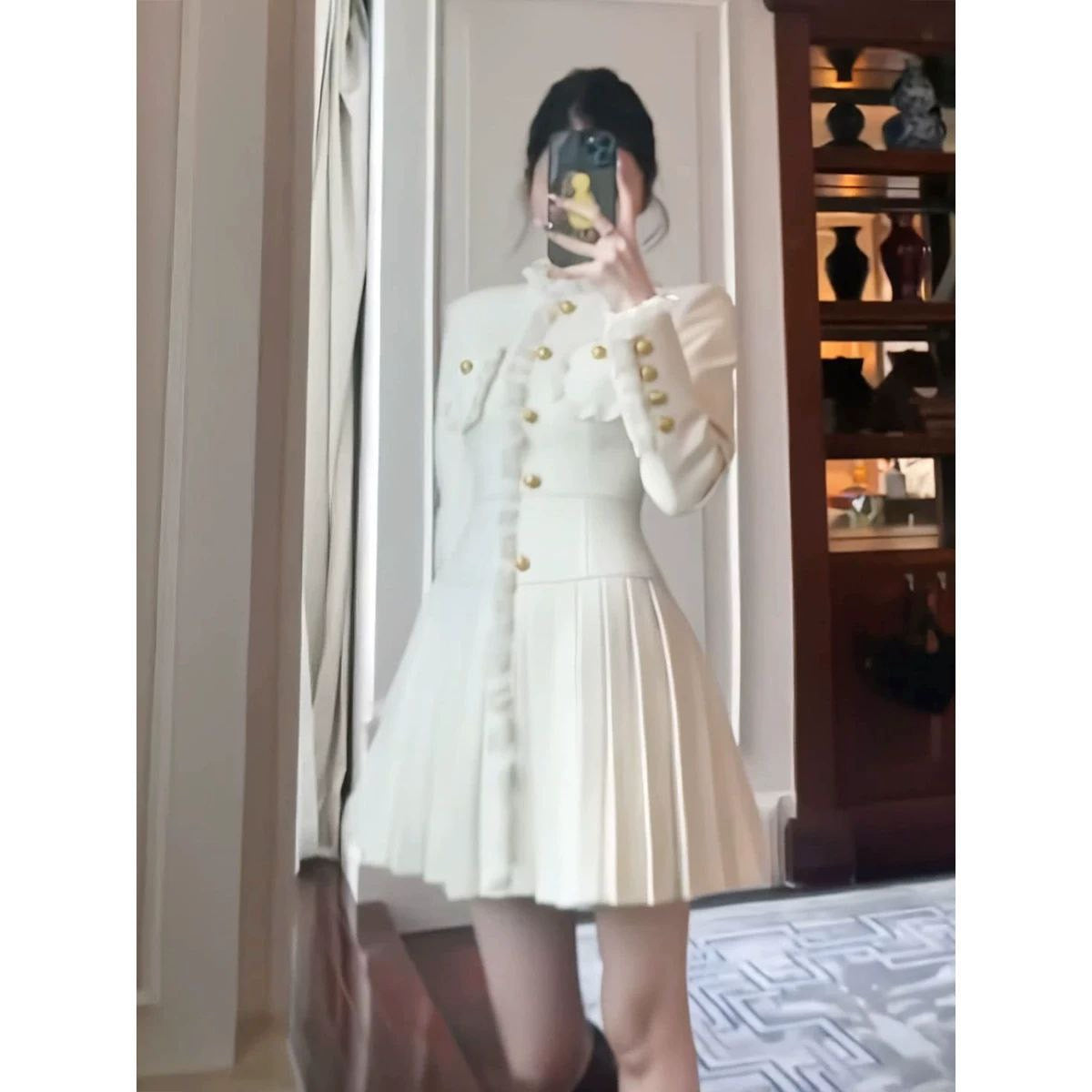فستان مطوي على طراز المشاهير شتاء جديد، طراز عطر صغير، فاخر وعالي الجودة